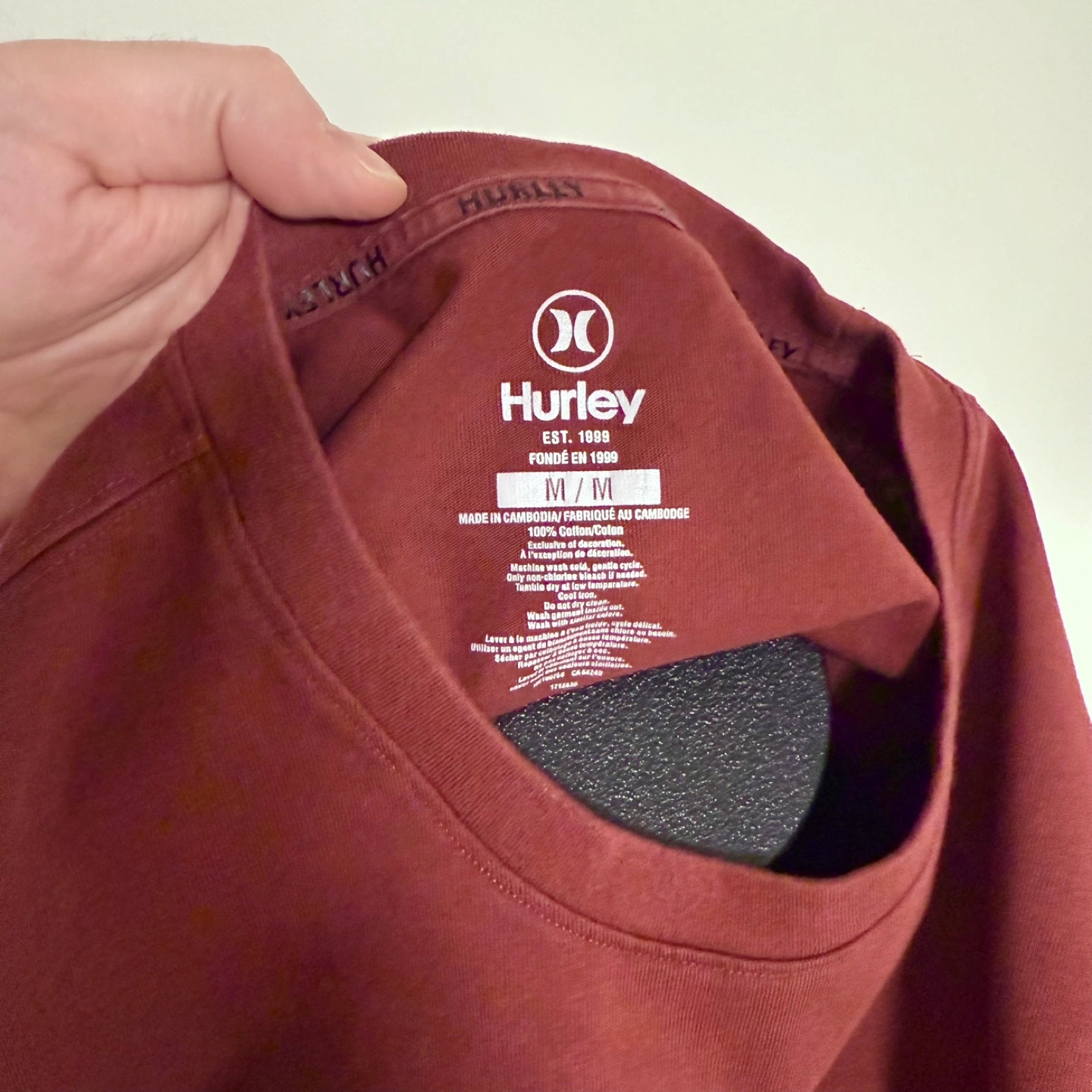 Men’s Hurley dark rust colour 100% cotton longsleeve fall shirt, size Medium. In clean, like-new condition Available pickup spots: 1. Avenue Rd & St Clair Ave condo (public lobby or driveway) or 2. Outside St Clair/Yonge subway station Sorry — no deliveries, other meetup spots or holds (will only hold during the travel time for a confirmed pickup)