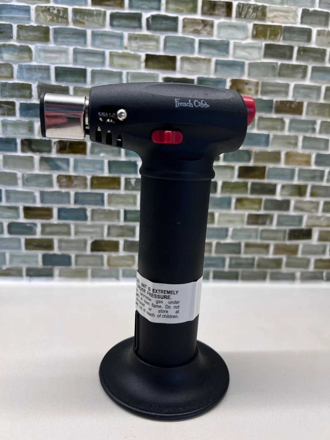 Selling a French Cafe culinary torch! Great for making creme brulee or searing meats. Please note the unit is extremely under pressure, so be careful when using it.