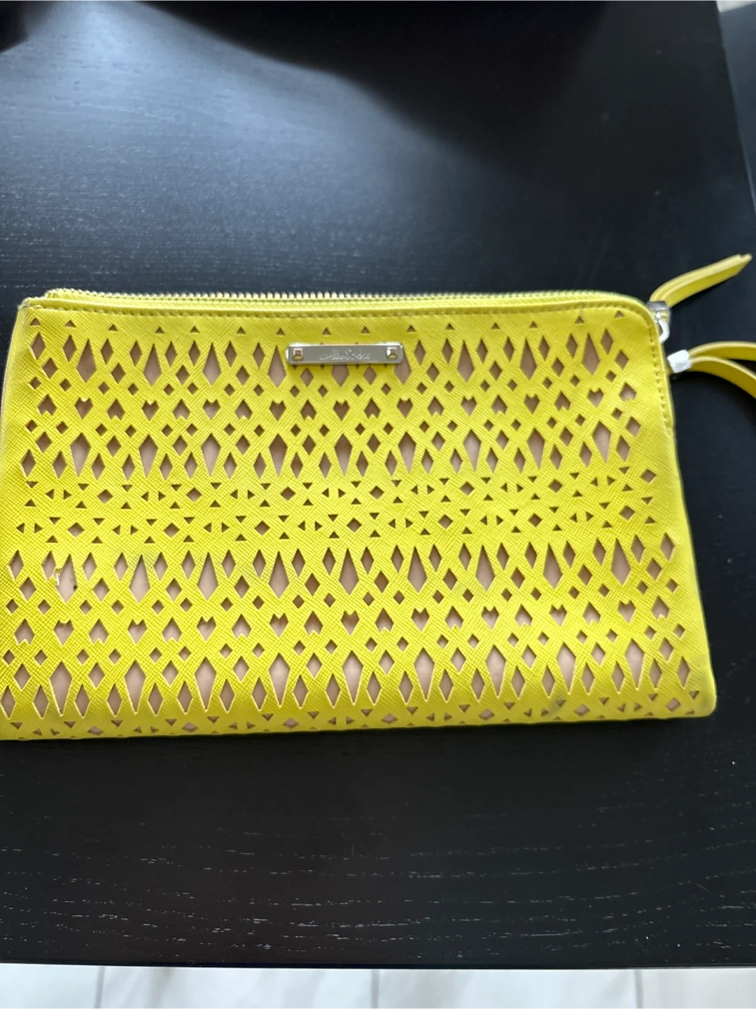 This is a cute Stella & Dot clutch with 2 zippered pockets, in a bright yellow colour! It has a unique laser-cut design on the front & back. The interior has several card slots and a small mirror.. pick up on Chandos Drive in Chicopee area of South Kitchener N2A4H8