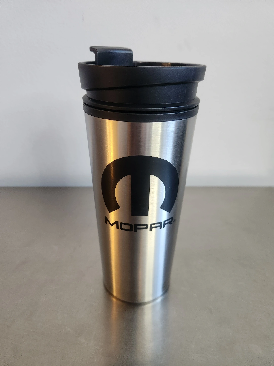 Selling a Mopar stainless steel travel mug. It's in great condition and ready for your hot or cold beverages. The mug features the Mopar logo, perfect for any car enthusiast!