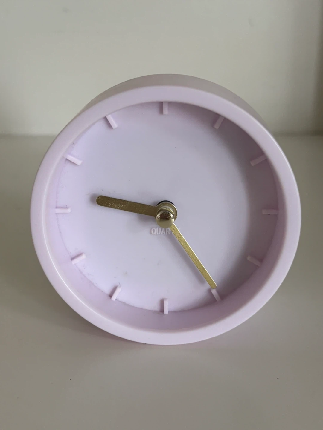 small & simple tabletop clock needs 1 AA battery (not included) time can be adjusted using the dial on the back tested & works great. cash only!