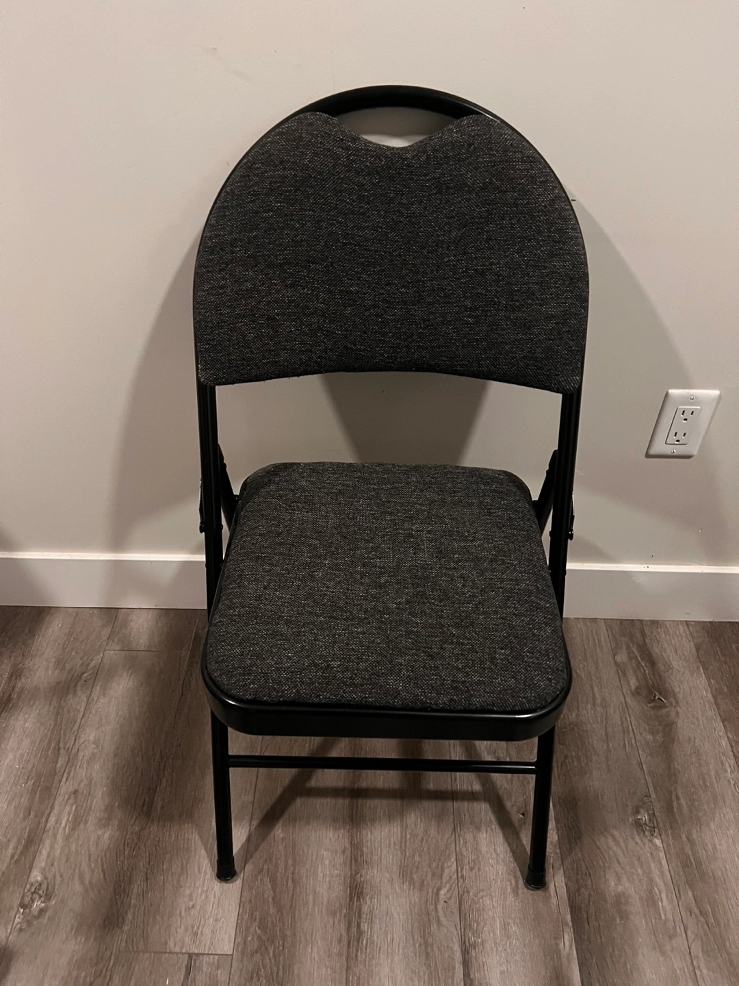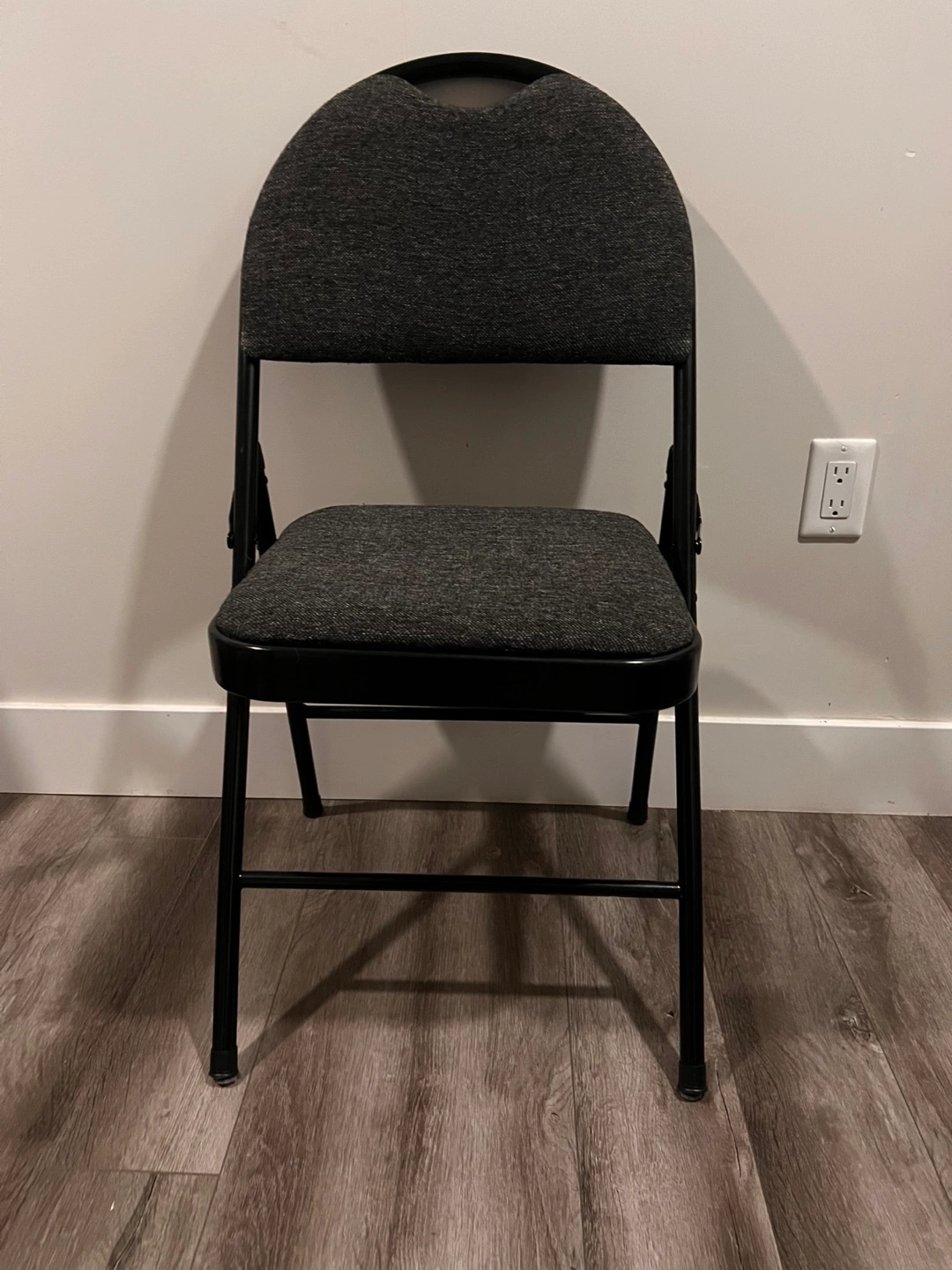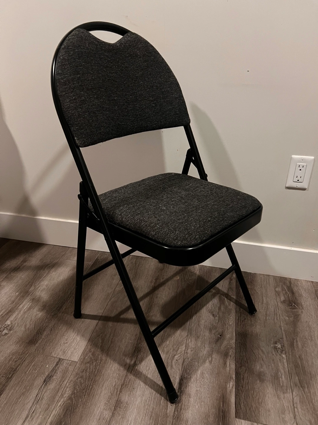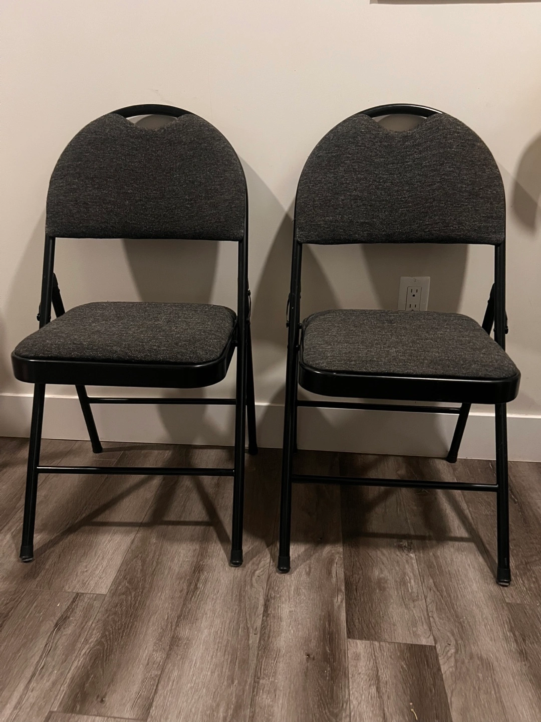 Mainstays fabric folding chairs (black), lightly used, excellent condition. $10 each or $20 for both. Pick up only, south Edmonton.