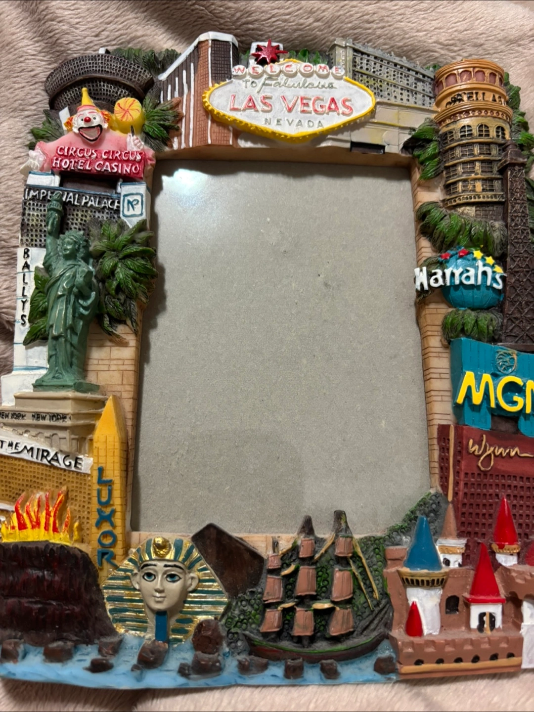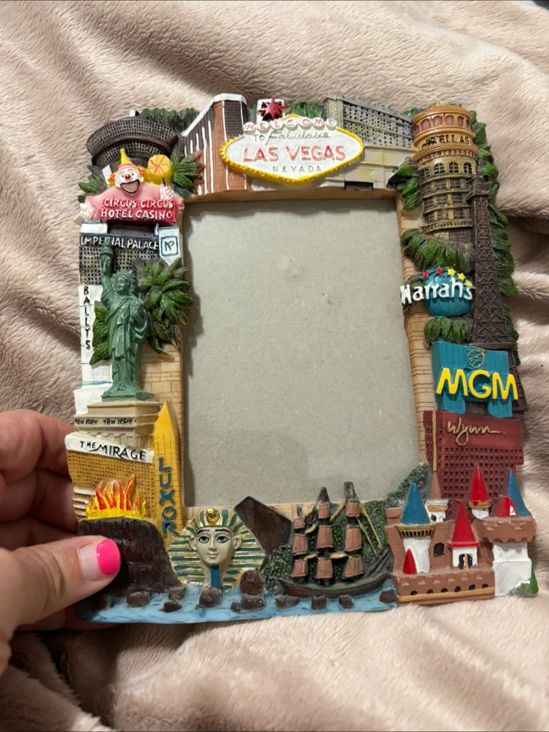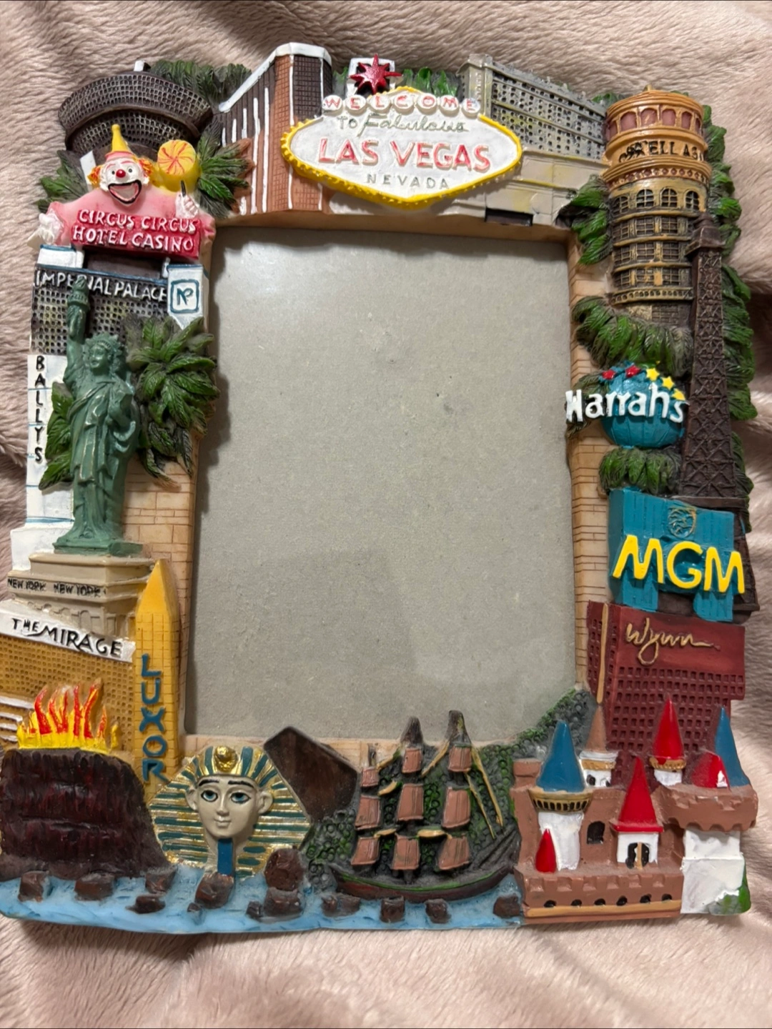Selling a fun Las Vegas themed picture frame! It features iconic landmarks and hotels like the Eiffel Tower, Luxor, and MGM. It's a great way to display your vacation memories or add a touch of Vegas to your home decor Was purchased for $20 US Pickup with cash only in Mississauga