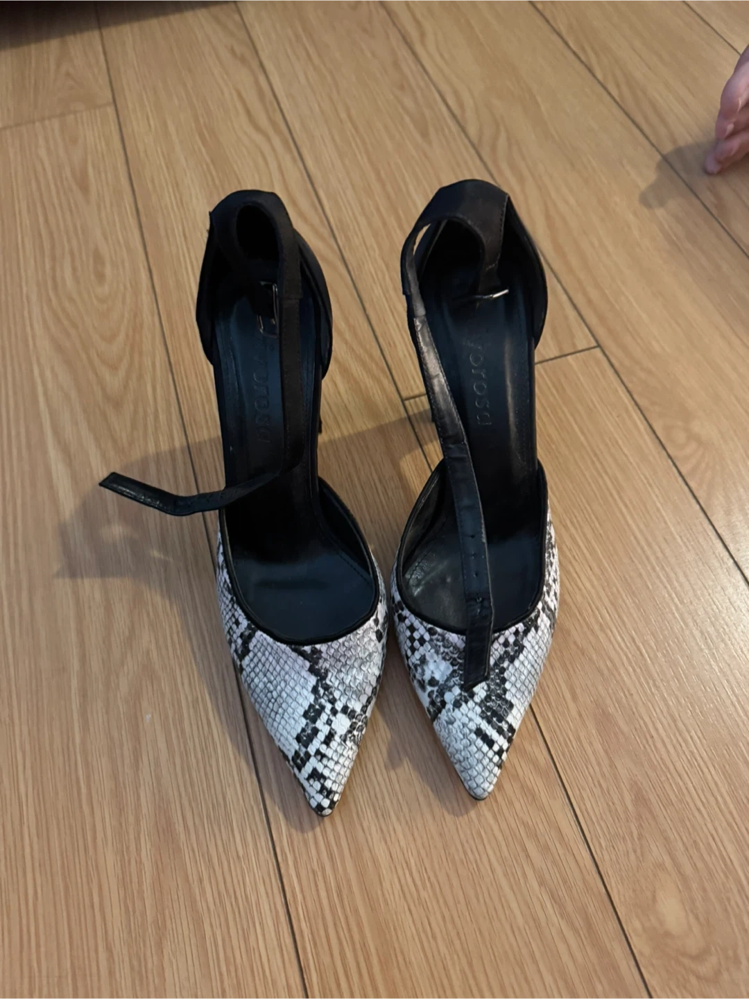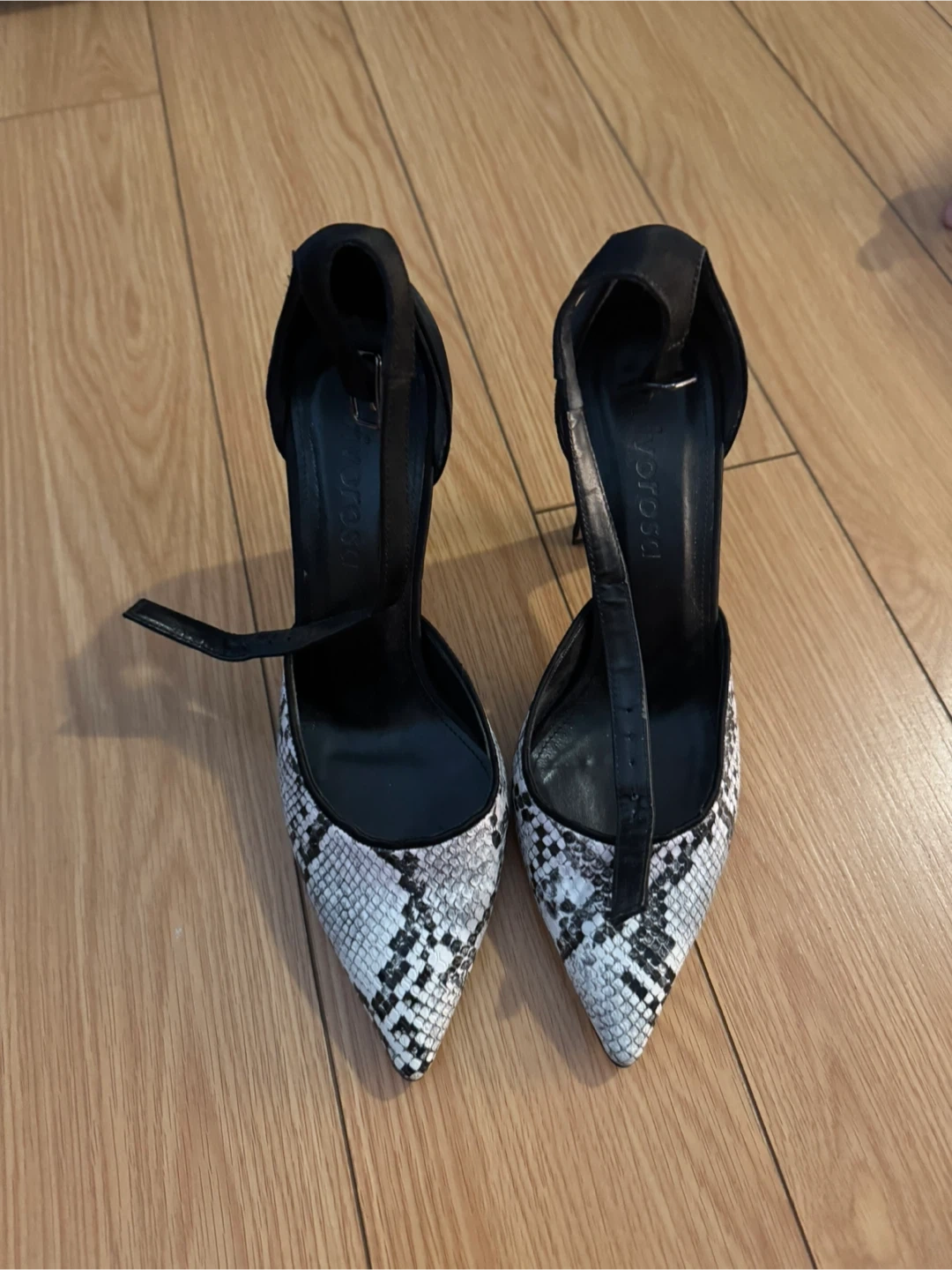 Selling a pair of Yorossi heels with a snakeskin pattern! They are a size 7 and in great condition. Perfect for a night out or a special occasion