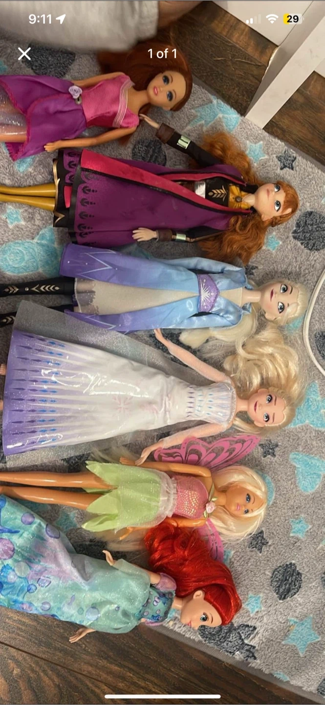 Selling a collection of Disney princess dolls! Includes Anna, Elsa, Ariel, and other fairy dolls. Perfect for any Disney fan or collector!