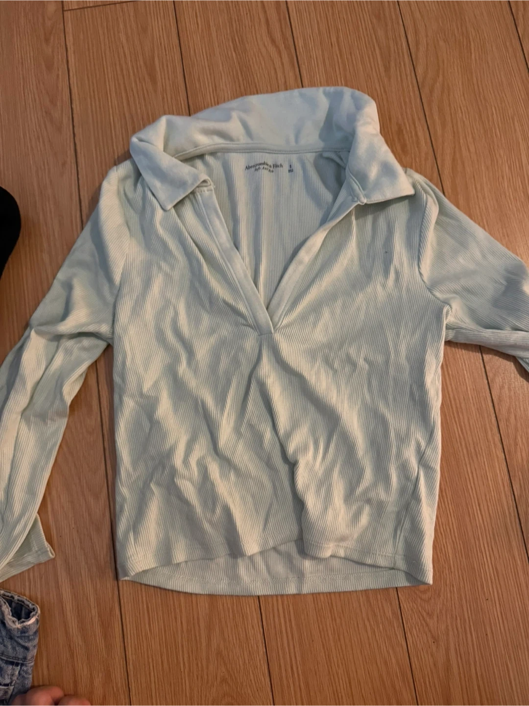 Looking to pass along this cute Abercrombie & Fitch ribbed polo top! It's a soft, light greenish colour and in great condition. Size is S.