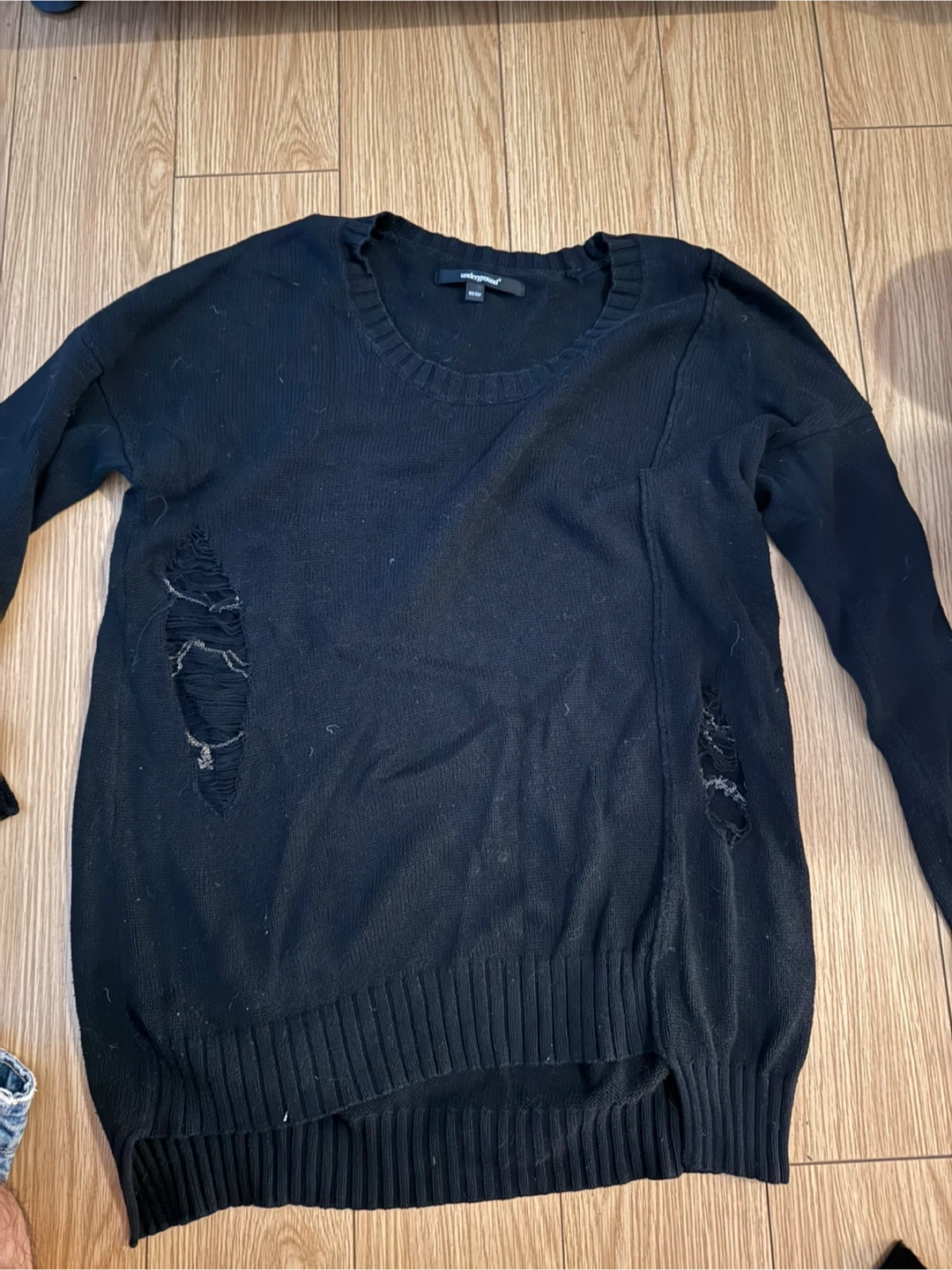 Selling a black distressed sweater from Underground! It's a size medium and has some cool ripped detailing. Great for a casual, edgy look!