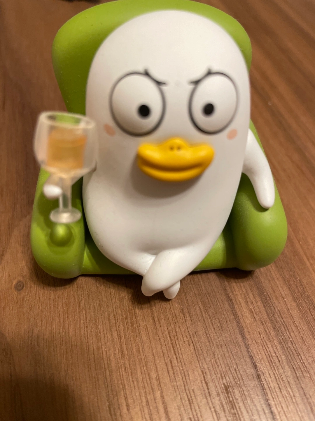 Selling a Pop Mart figurine from the Duckyo Friends collection! It's in great condition and features a cute duck character relaxing in a green armchair with a drink. Perfect for collectors or anyone who loves adorable figurines. Pick up only Cash only
