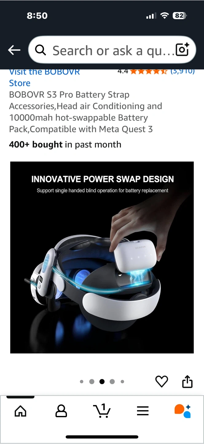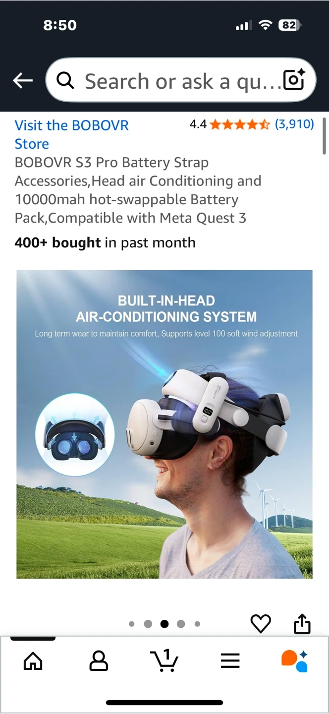 Selling a BOBOVR S3 Pro Battery Strap. It's compatible with the Meta Quest 3. This strap features head air conditioning and a 10000mah hot-swappable battery pack. It has seamless compatibility with Quest 3 and Quest 3S. It also features an innovative power swap design to support single blind operation for battery replacement