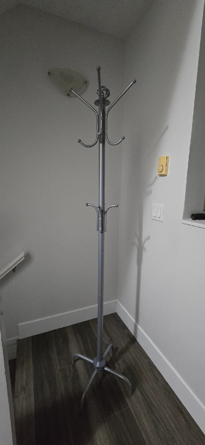 Selling a silver metal coat rack. It's in good condition and ready to hold your coats and hats! Pick up Only Queensborough Area!