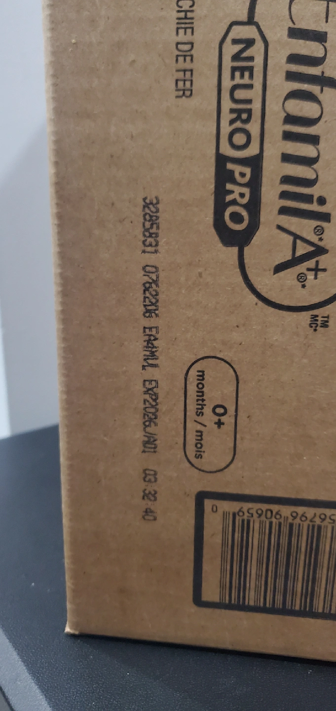 Selling a box of Enfamil A+ Neuropro infant formula. It contains 4 packs with 6 bottles each, with each bottle containing 237 mL of formula. Ready to feed, milk-based and iron fortified. Expiry date is 2026 January 01