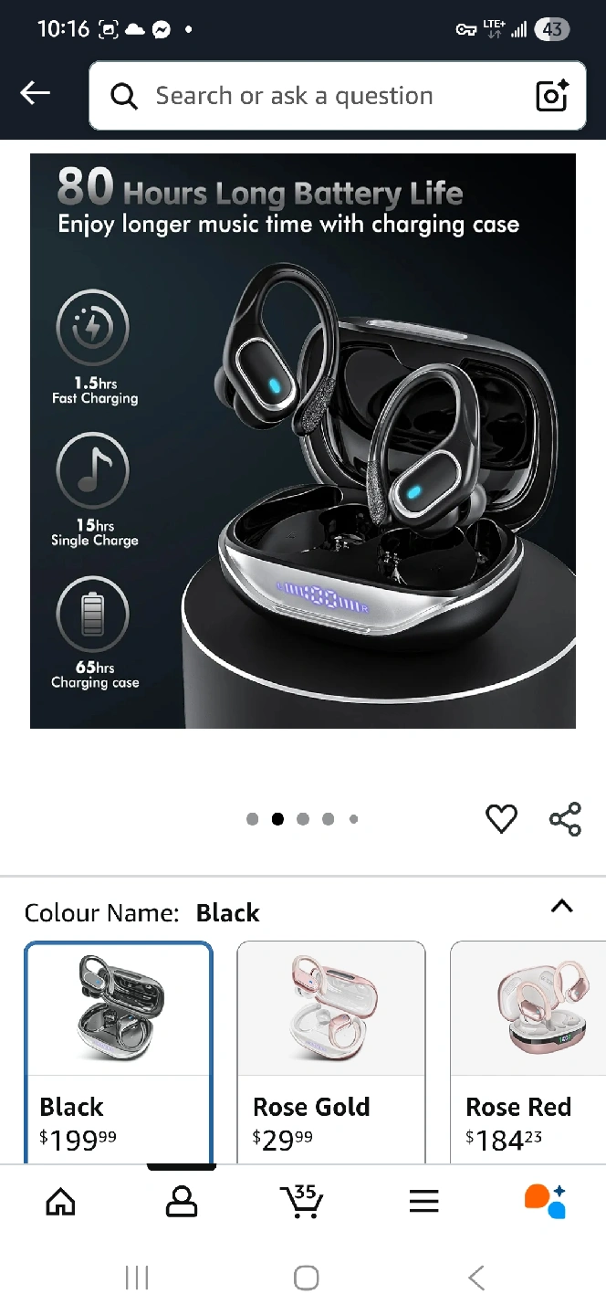 Enjoy longer music time with the charging case! These black HAOYUYAN wireless earbuds feature Bluetooth 5.3 technology and one-step pairing. They are equipped with a 14.3mm graphene diaphragm for Hi-Fi stereo sound. They also have an IPX7 waterproof rating and come with three different sizes of ear tips. Originally $199.99!