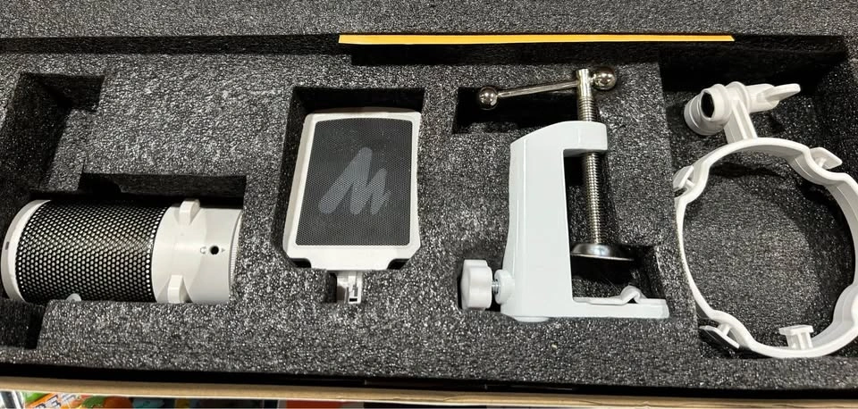 It was a return. Brand new, all the parts, tested. Great budget friendly sound for Discord and online gaming. It’s white color. $60 on Amazon. Pick up Langley