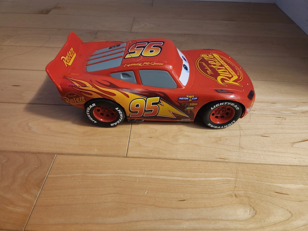 Selling a Lightning McQueen remote control car from Disney Pixar's Cars. It's in great working condition - no issues. Batteries included. Comes from a smoke and pet free home.