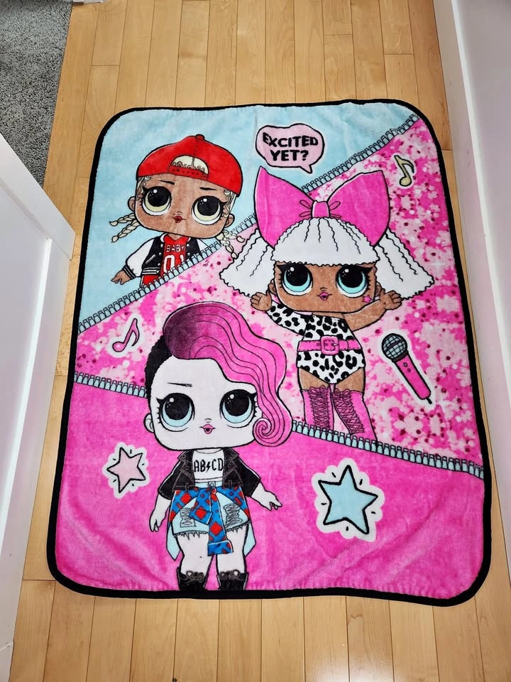 Selling an LOL surprise fleece throw/blanket in good condition. Dimensions: 40 in x 50 in (102 cm x 127 cm). Comes from a smoke & pet free home.