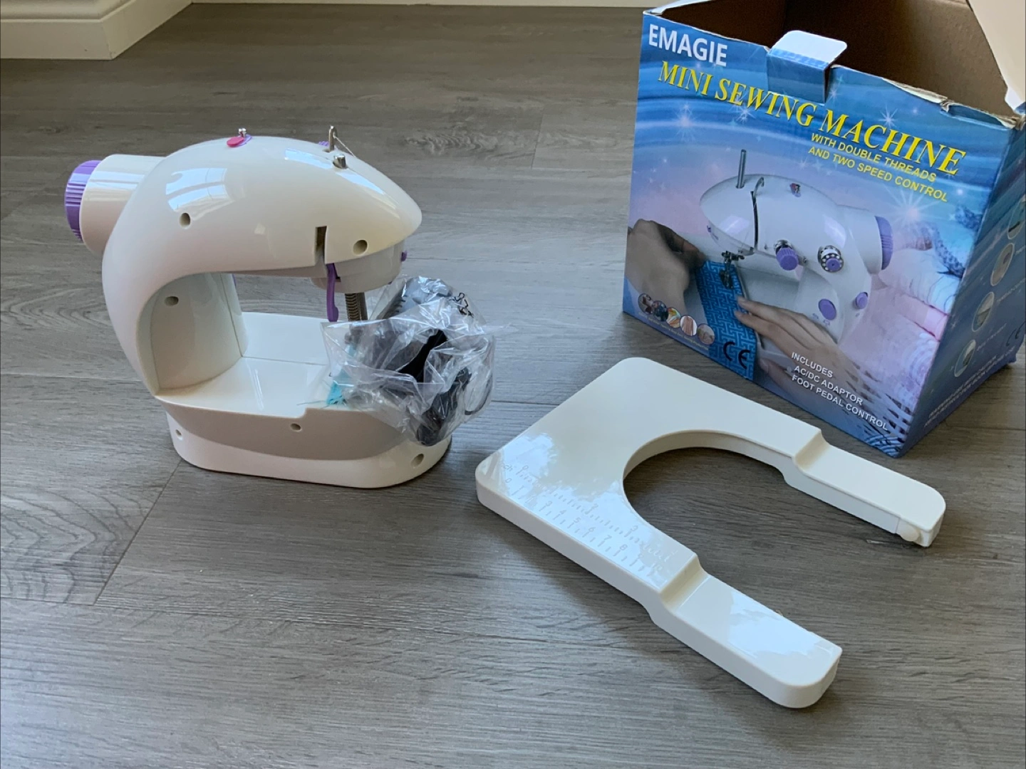Selling an Emagie mini sewing machine! It comes with double threads and two speeds for easy use. It also includes the AC/DC adaptor and foot pedal control. The box is included! Pick up at Hamilton