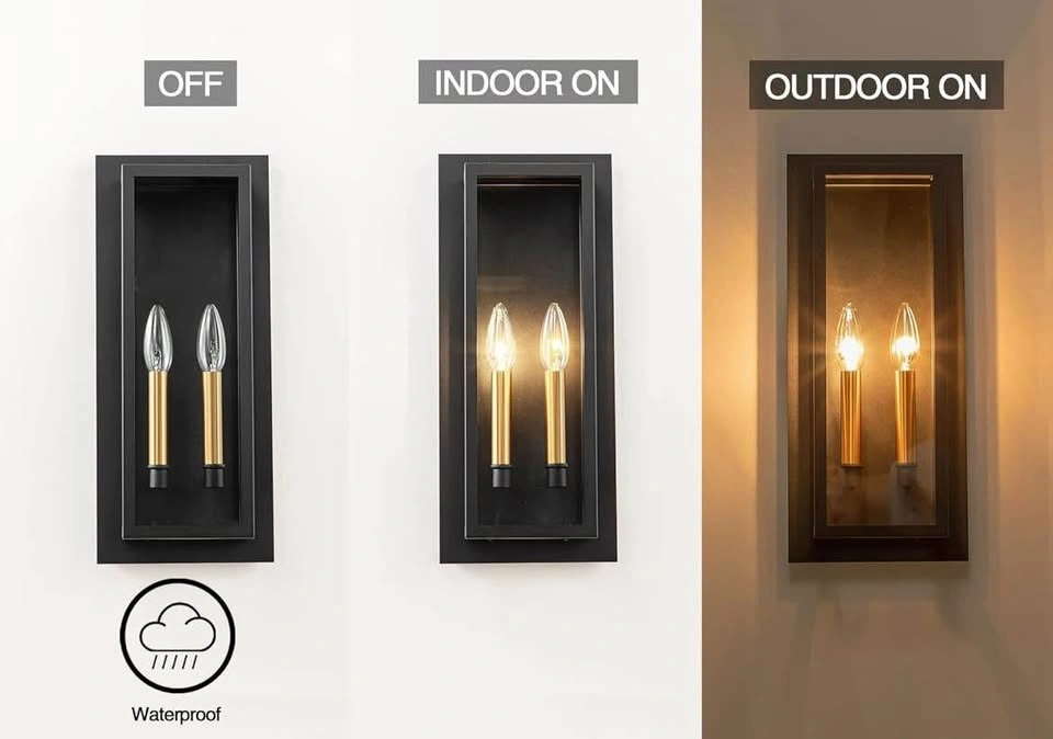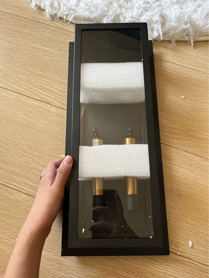 Brand new in box, opened to take photos. Retails $80, selling for only $30. Pls see photos for dimensions. Outdoor Wall Light Fixture Exterior, Black Modern Porch Lights Wall Mount, 2-Light Outside Large Outdoor Wall Sconce with Golden Interior, Patio Light Fixture for House, Front Porch, Garage