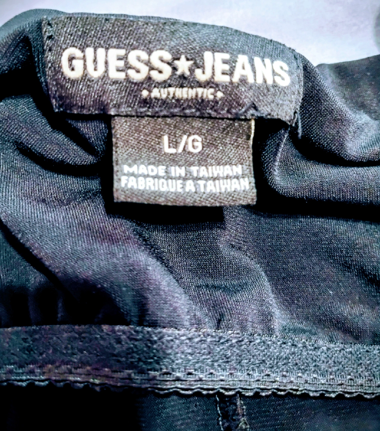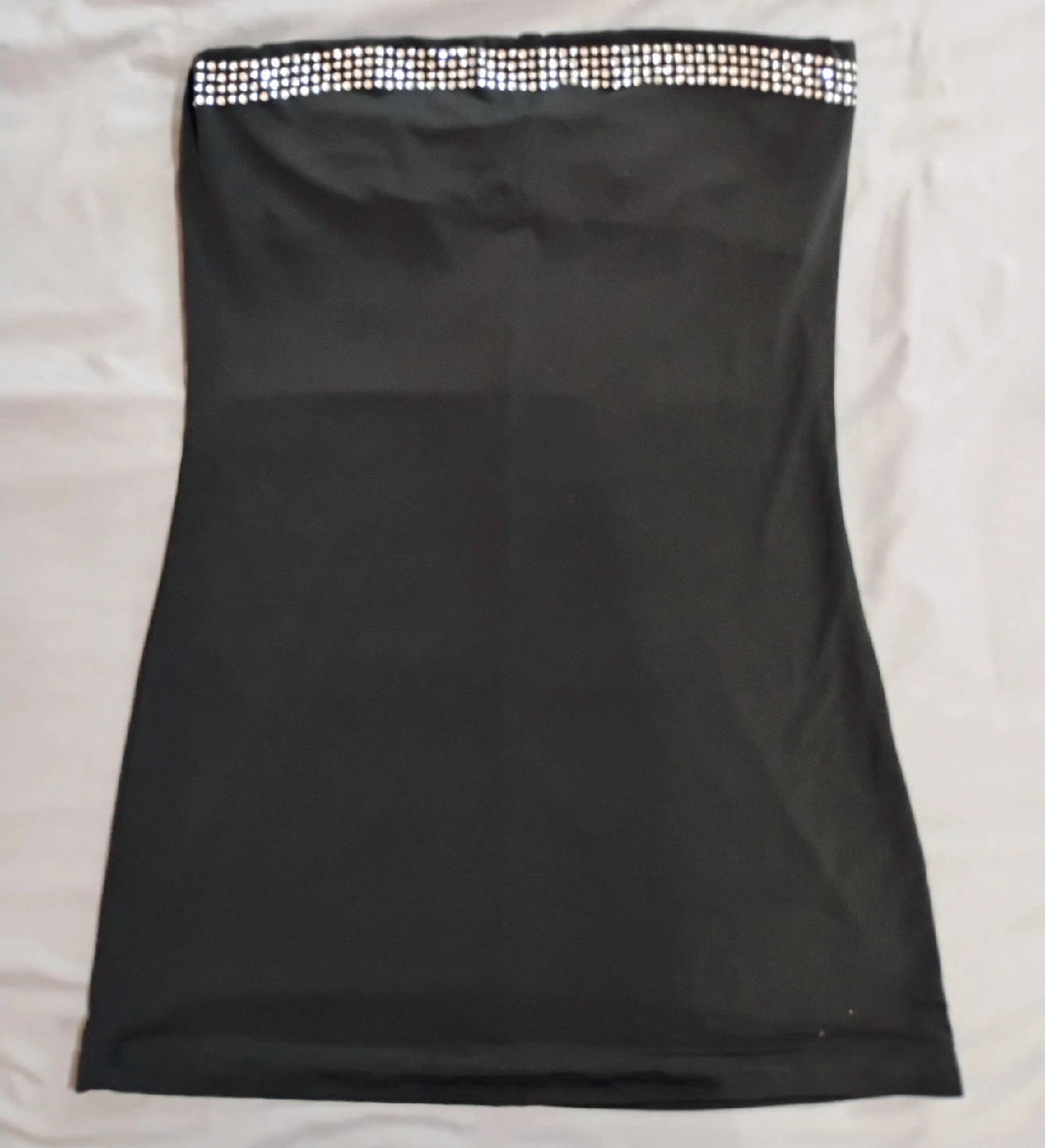 Selling a black tube top from Guess Jeans. It's a size large and has a sparkly trim at the top. Perfect for a night out or dressing up any outfit!