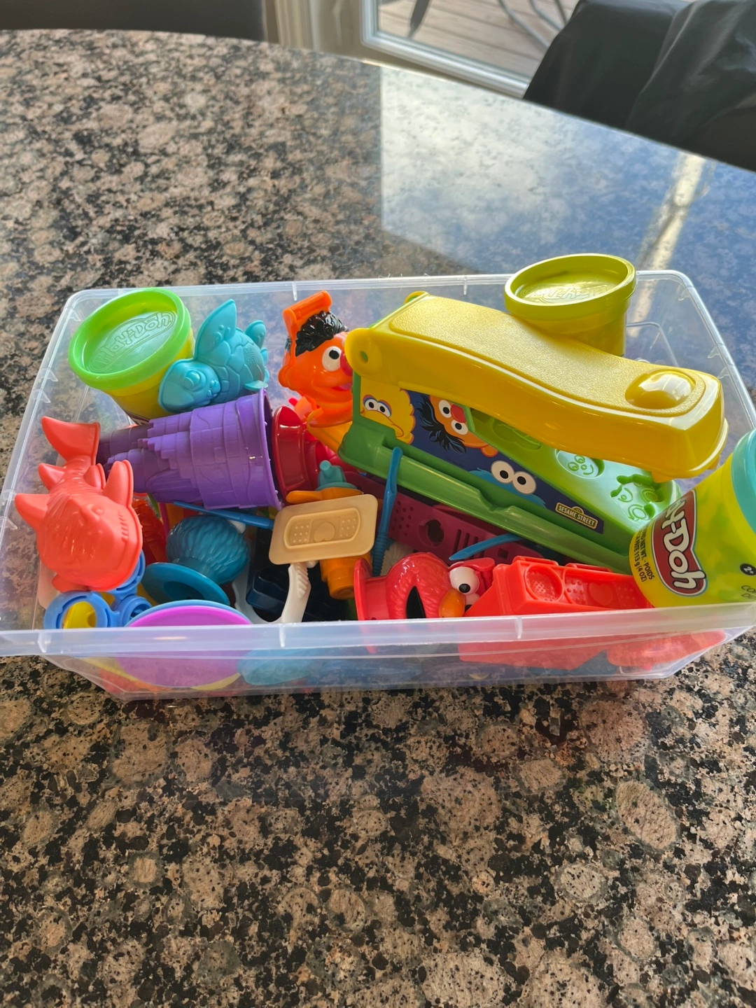 Selling a Play-Doh set that comes with a variety of tools and a container to keep everything organized! Great for kids to explore their creativity and have fun with different shapes and colours