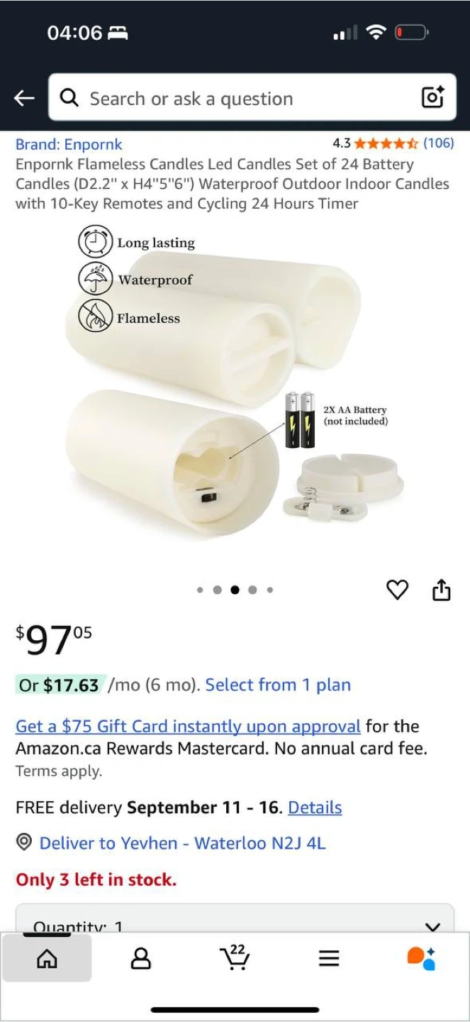 Enpornk Flameless LED Candles Set β 24pcs with Remote Control, Waterproof, Battery Operated π‘ Brand new, never used! β¨ Set includes 24 flameless LED candles in different heights (H4β, H5β, H6β, D2.2β) β¨ Comes with 10-key remotes for easy control β¨ Waterproof β suitable for both indoor & outdoor use β¨ Safe, realistic warm light β no fire hazard β¨ Perfect for home dΓ©cor, parties, weddings or cozy evenings π² Price: $50 (brand new) π Pickup in Waterloo π Check my other listings for more great deals!