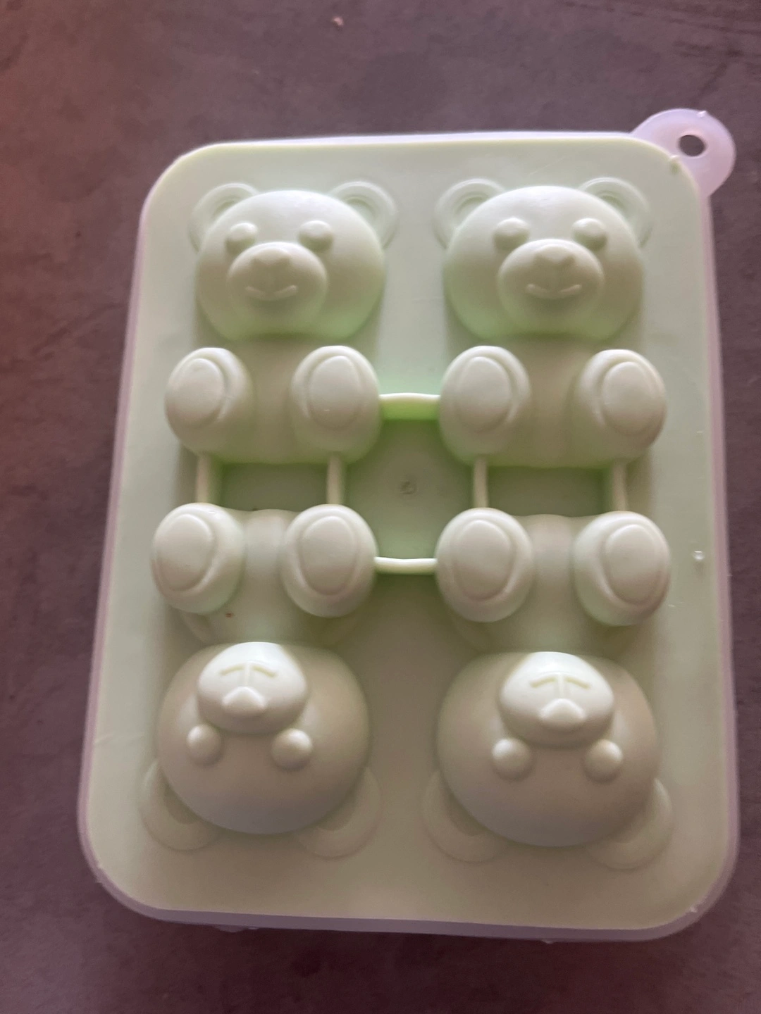 Selling a light green silicone mold shaped like teddy bears! It's perfect for making candies, chocolates, or even ice cubes. This mold is in great condition and ready for a new home. Get creative with your treats!