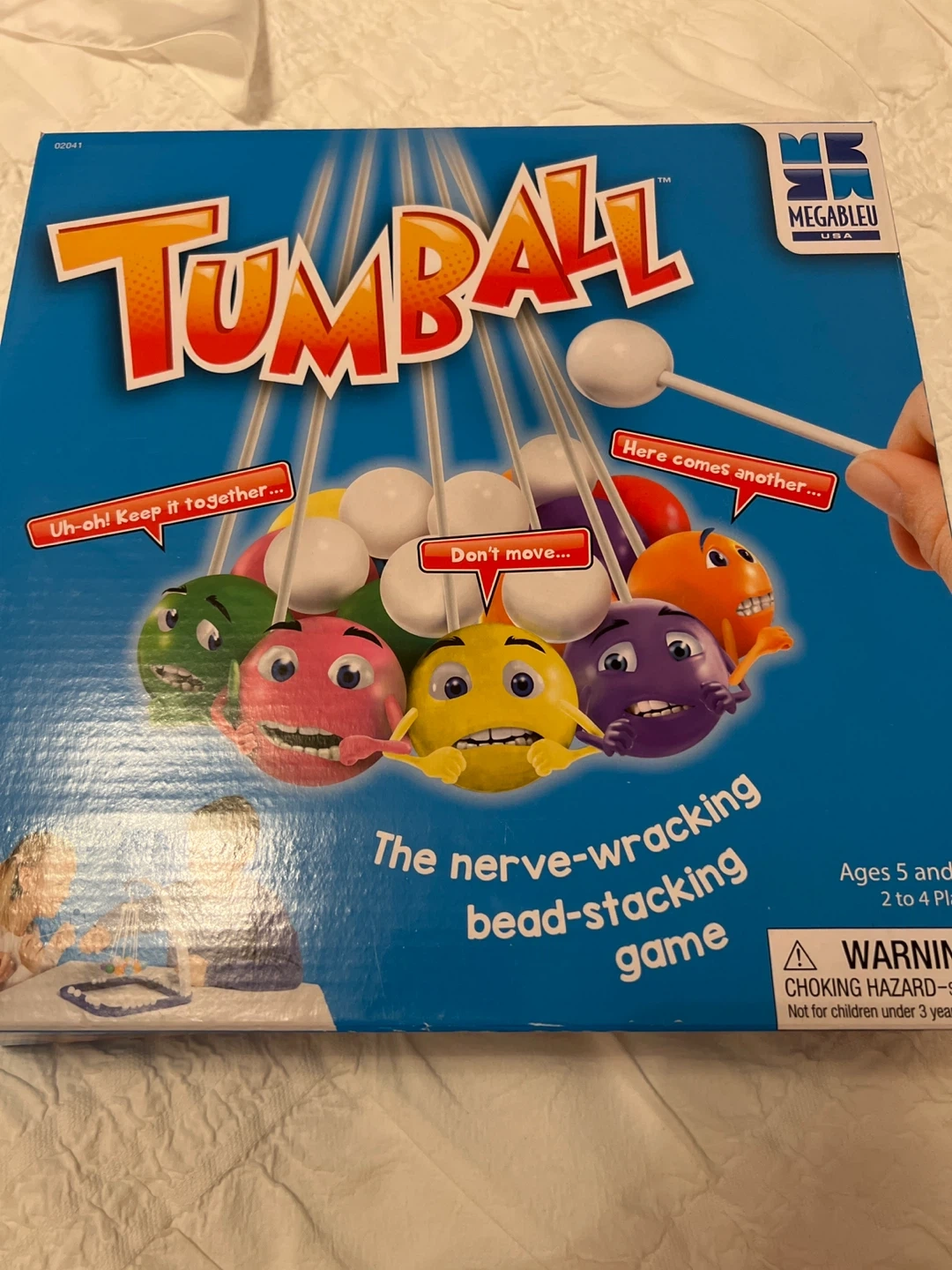 Selling a Tumball game! It's the nerve-wracking bead-stacking game for ages 5 and up and 2 to 4 players. It's in great condition and ready for a new home!