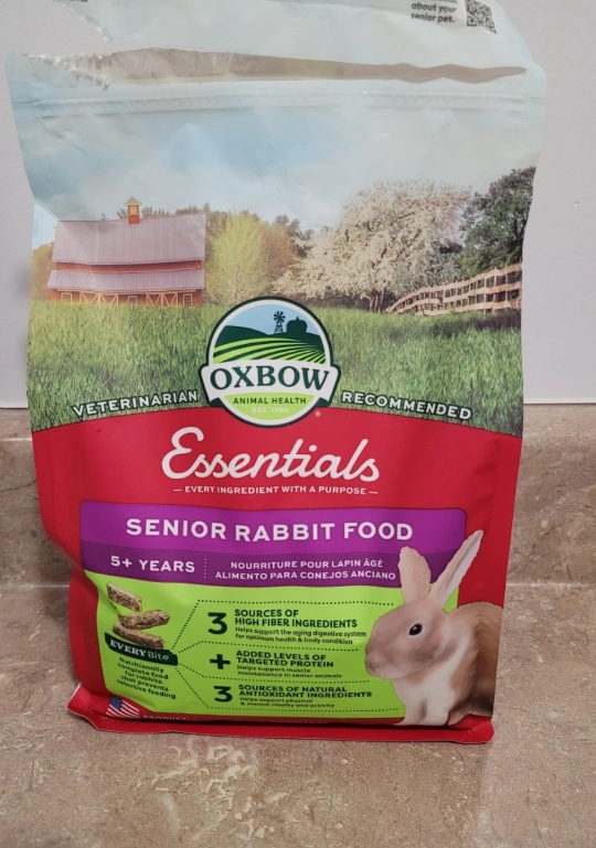 Four pound bag of Oxbow Essentials Senior Rabbit Food, perfect for rabbits aged 5+ years! Opened, but 9/10th full. Expiry date is April 9 2027. (Purchased the wrong bag. Meant to purchase GP food.)