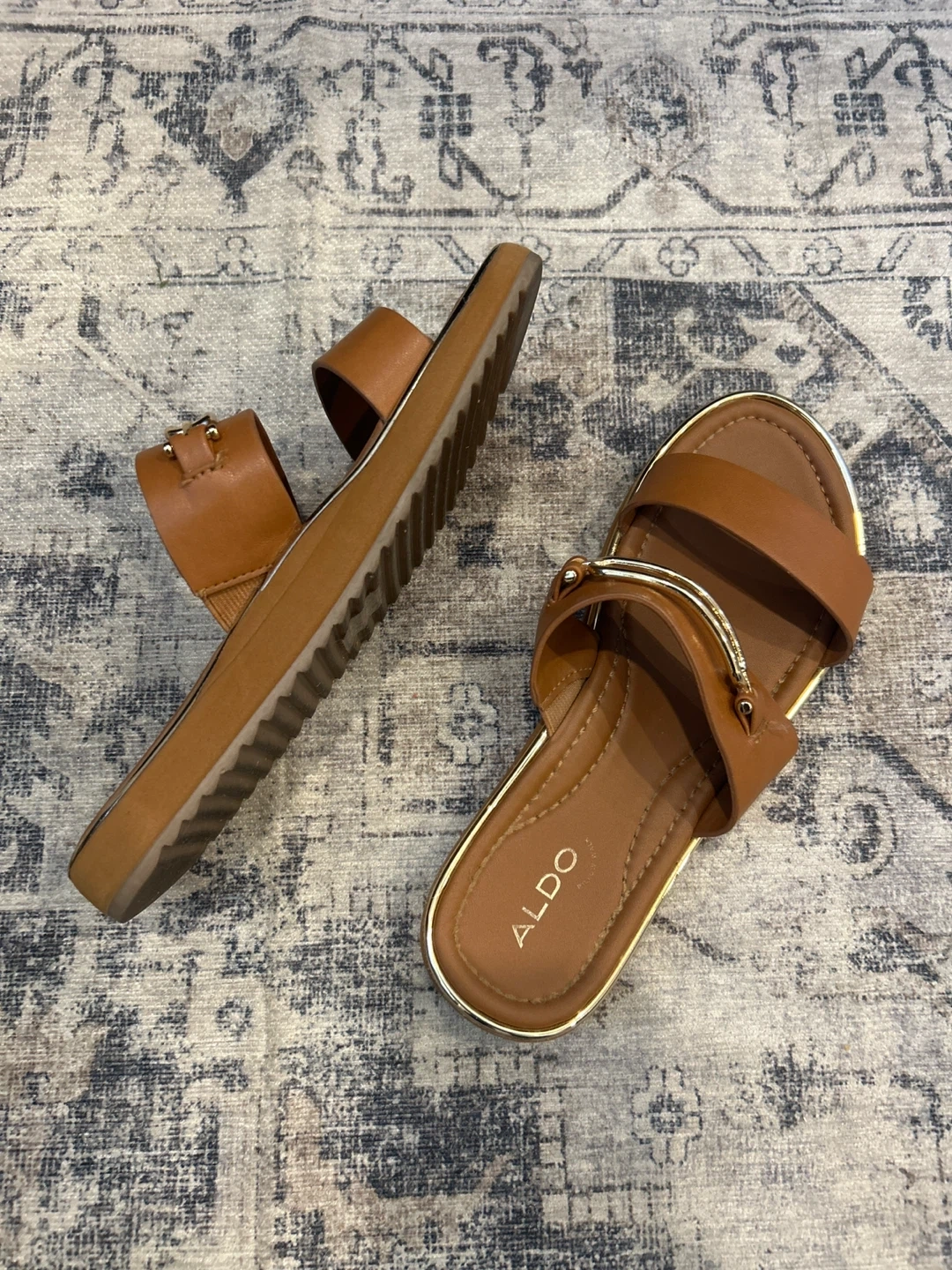 Selling a pair of Aldo brown sandals in great condition! They are a size 6 US. These sandals have a stylish design and are perfect for everyday wear. Check out the photos for a closer look!