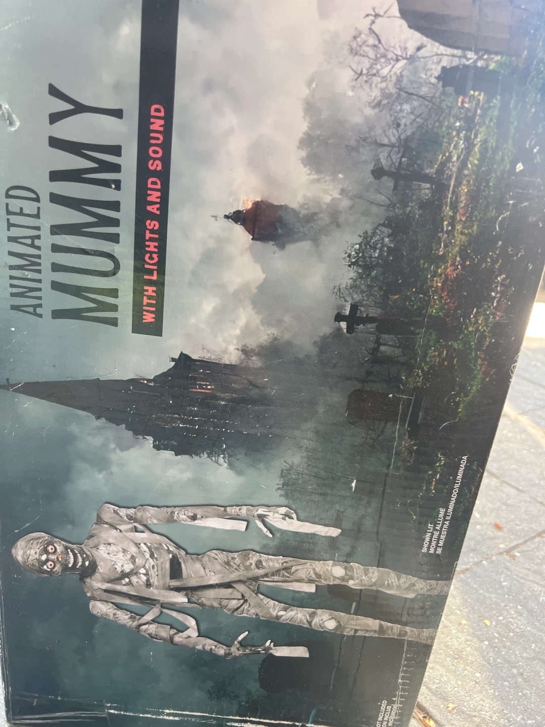 Selling an animated mummy with lights and sound! It has LED eyes and glows in the dark. The wrap is included and it's motion sensor activated. There is also a timer that is set to 6 hours on and 18 hours off