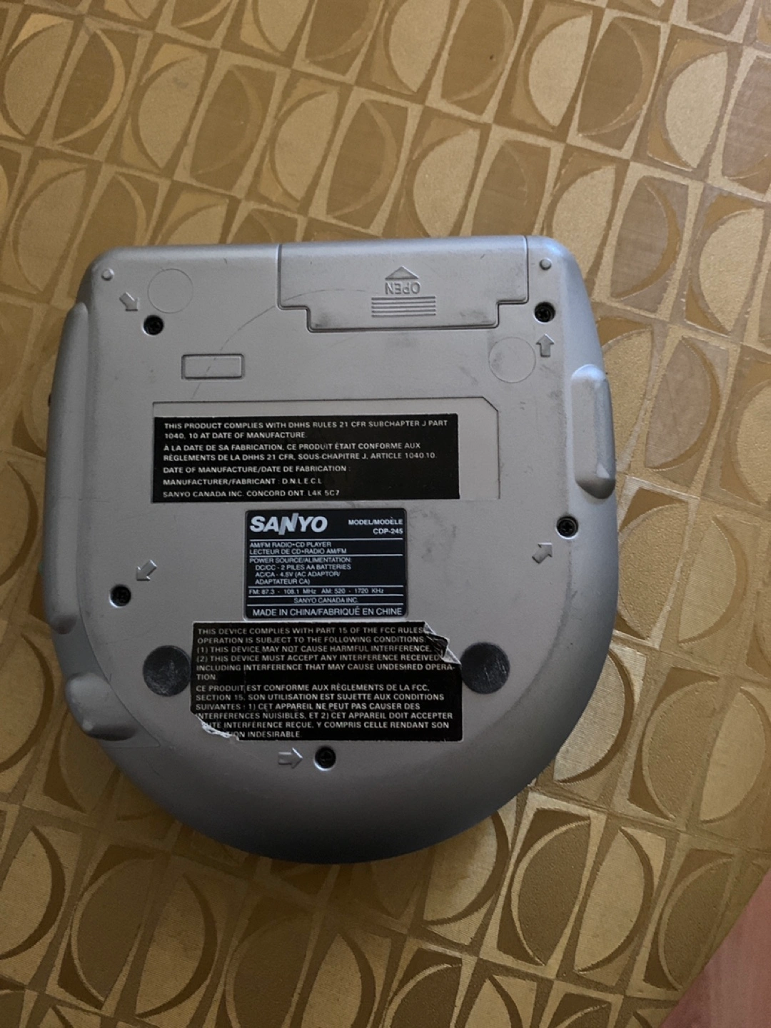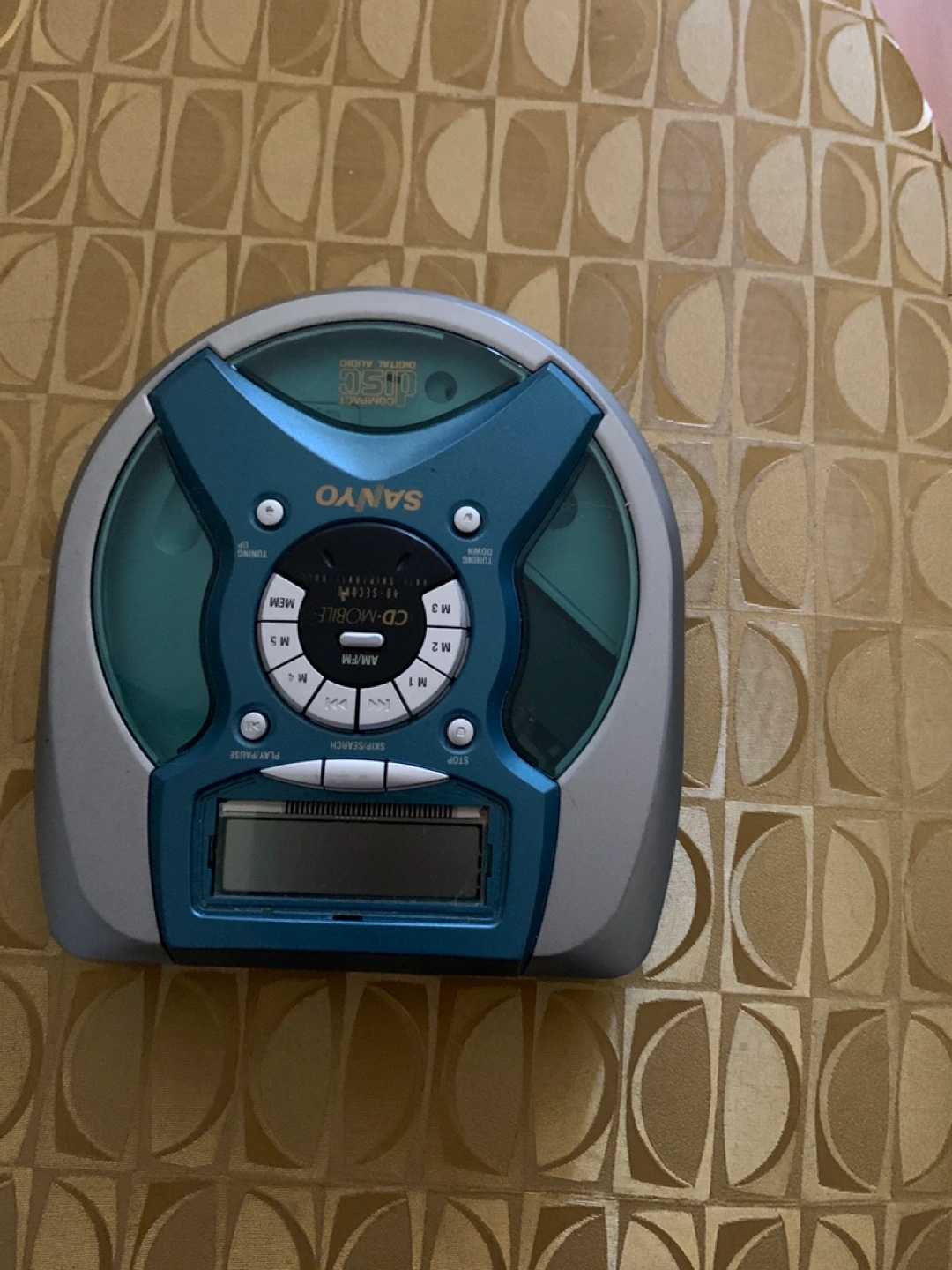 Selling a vintage Sanyo CD Mobile player. It's in good condition for its age and perfect for anyone looking to relive the 90s or enjoy their CD collection on the go! This model is the CDP-566. It has AM/FM radio and can run on DC3V, using 2 AA batteries.