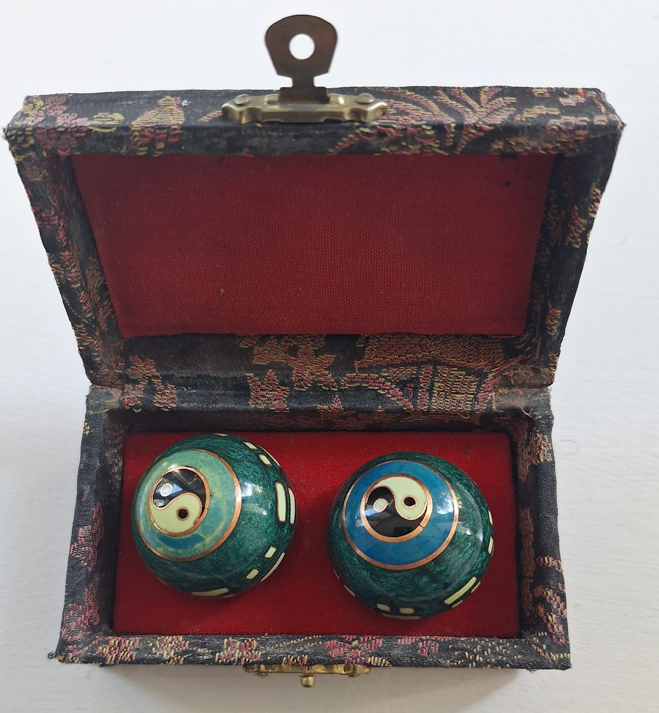 set of vintage health, stress balls that come in a beautiful decorative box! These are great for relaxation and exercise.
