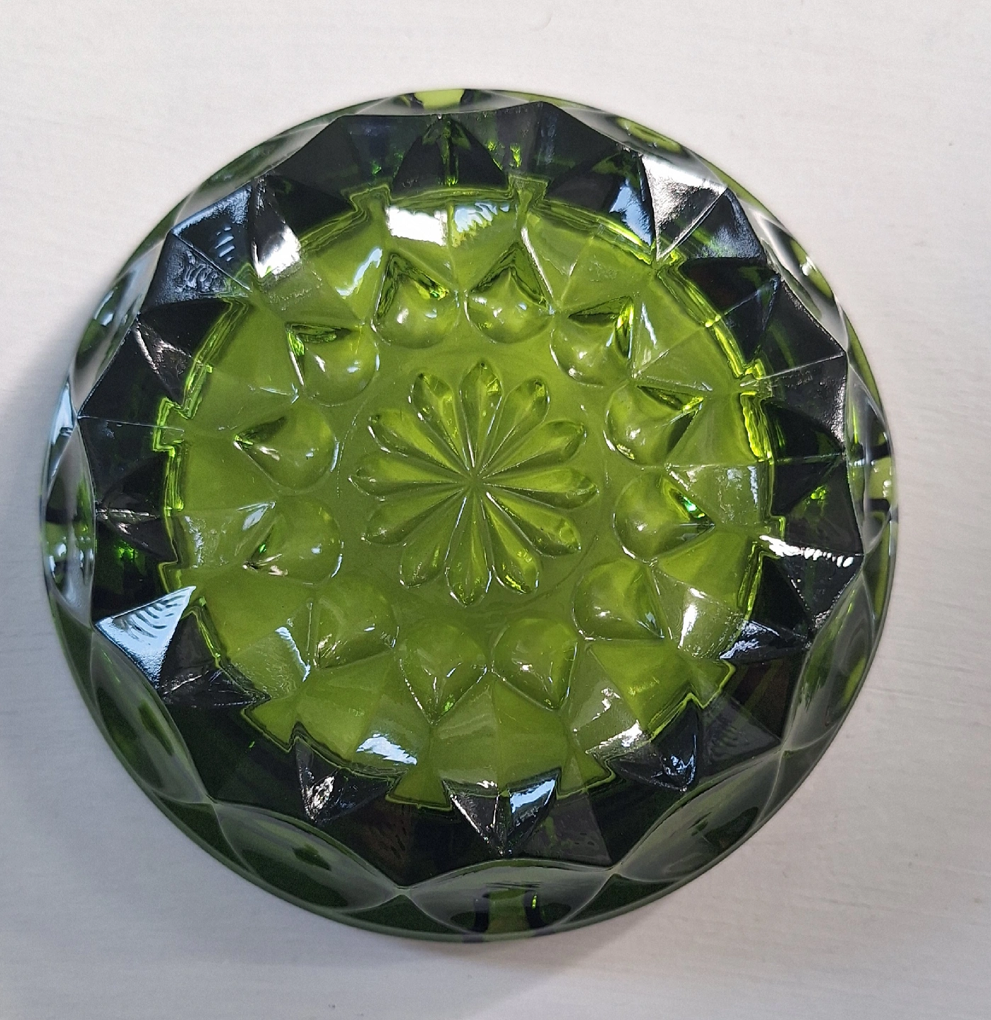 Selling a vintage green glass ashtray. Made in USA in 196os by Anchor Hosking. Great conditions