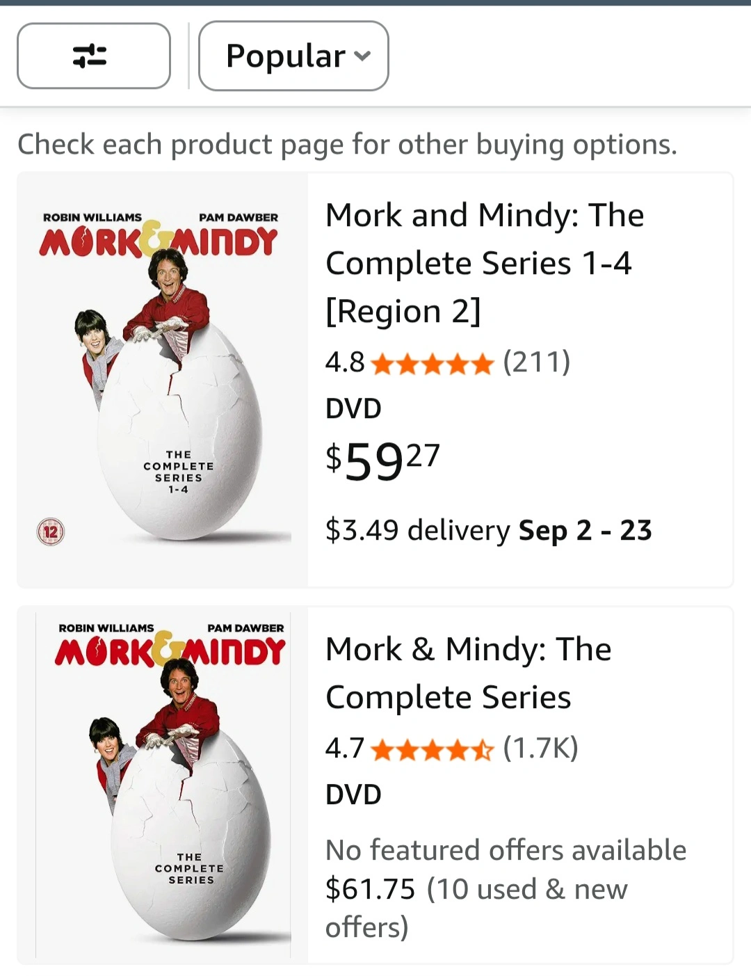 Complete series Mork & Mindy DVD! Mint condition, still sealed. Includes all 95 episodes plus special features and gag reels on 15 DVDs. Includes 2 Happy Days episodes featuring Mork in his TV debut. Originally bought for $99.99! Currently on Amazon for $59. Located King St W and Dufferin St. See my other listings.