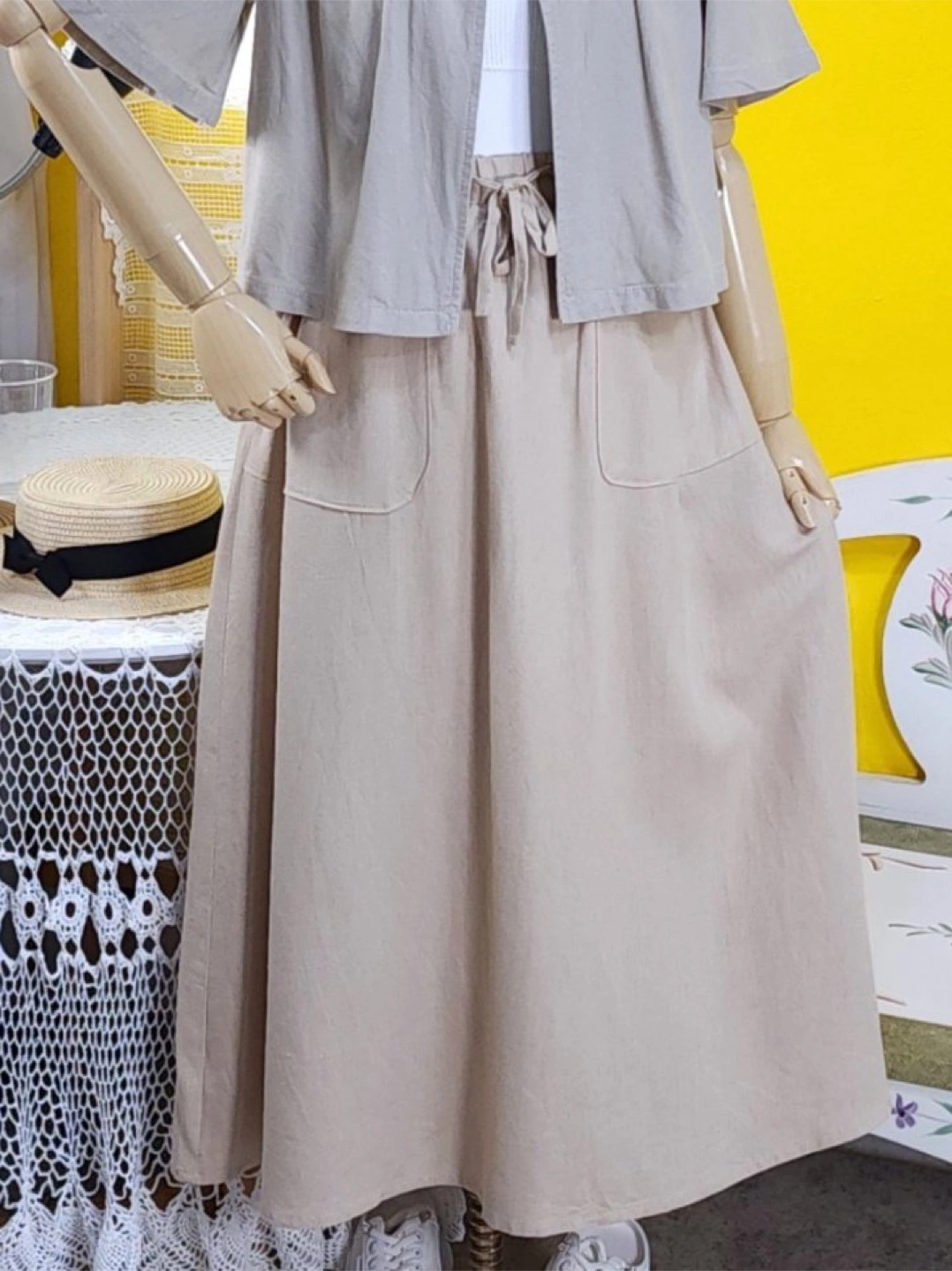 š Description A timeless and versatile vintage linen-rayon blend skirt designed with effortless elegance. This midi-length skirt features a relaxed A-line silhouette, perfect for both everyday wear and office-ready styling. The elastic waistband with drawstring and generous front patch pockets add comfort and practicality, while the breathable fabric makes it an ideal piece for spring and summer. ā Material ⢠Shell: 51% Linen, 49% Rayon ⢠Lining: Polyester blend ā Size: Flat Measurements ⢠Waist: 33ā45 cm (13ā17.7ā) ⢠Total Length: 85 cm (33.4ā) ⢠Tagged size: Free (recommended SāL for Women depending on desired fit) Please refer to detailed measurements for best fit. ā Features ⢠Classic midi A-line silhouette ⢠Elastic waistband with drawstring tie ⢠Spacious front patch pockets ⢠Breathable fabric with full lining for comfort ⢠Easy to style for office wear, travel, or casual days š Condition: ⢠Overall in excellent vintage or secondhand condition. Due to the nature of items, there may be minor signs of wear, such as slight stains or small imperfections.