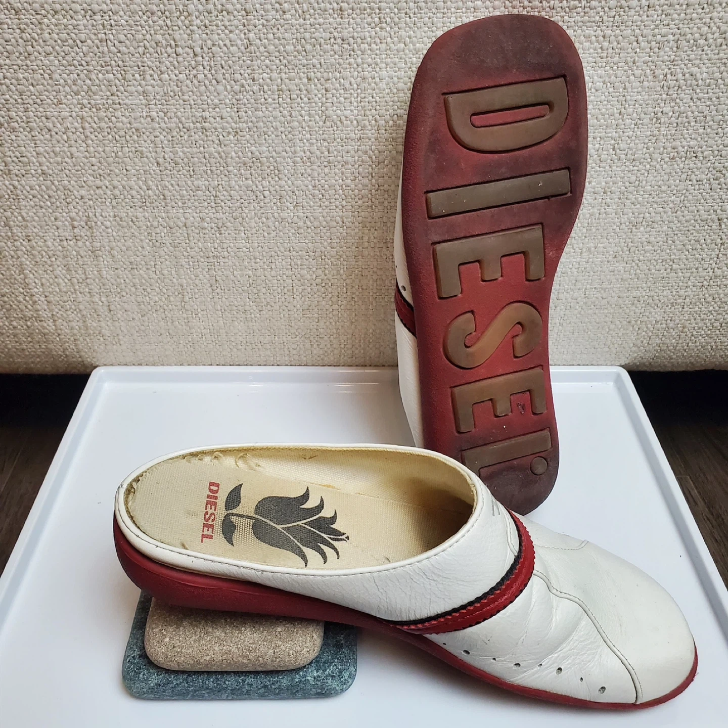 These Diesel P-Lisabeth mules are a stylish addition to any wardrobe! They feature a unique design with a white and red colour scheme. The size is US 7 / Euro 37 / CM 24. They come with the original box. Originally bought for $145!