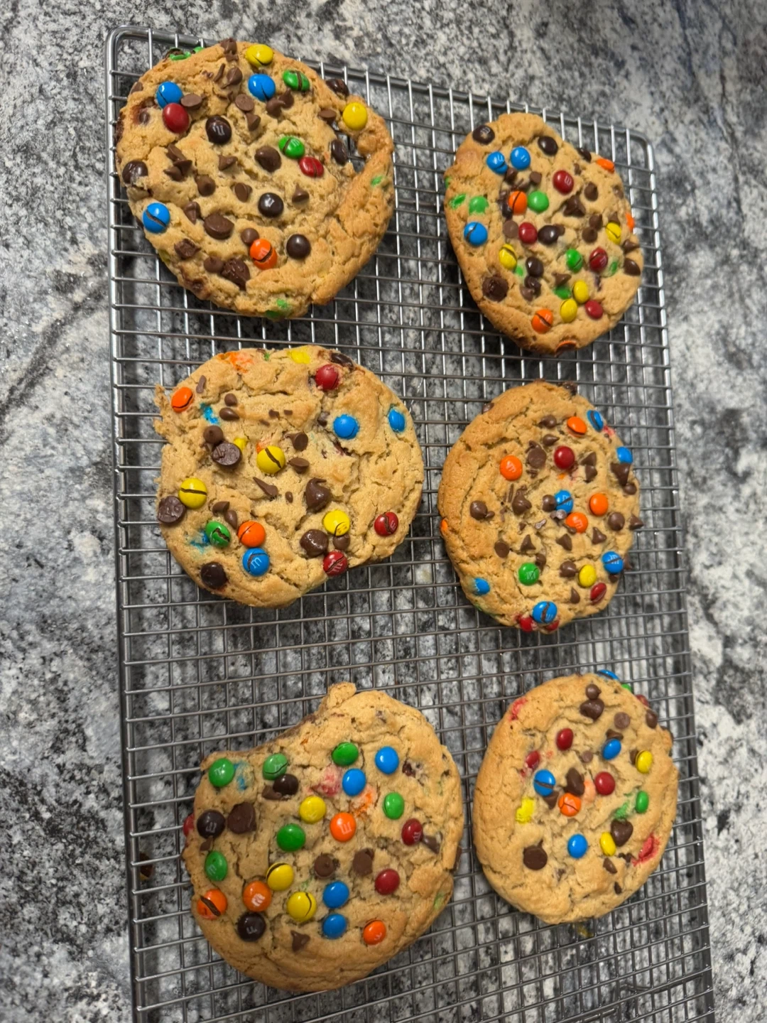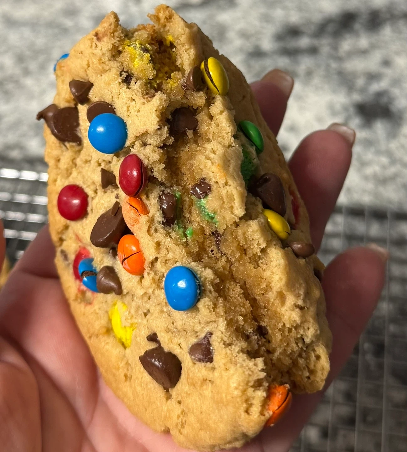 Freshly baked homemade cookies! They're soft, chewy, thick and loaded with delicious mix-ins. A perfect treat for any occasion. These are 3.5-4.5 oz cookies before toppings/stuffings. The two kinds shown are peanut butter M&M chocolate chip and Chocolate chip/chunk. More kinds available. $4 each or if you buy 12 or more they are $3.50. Inbox any questions