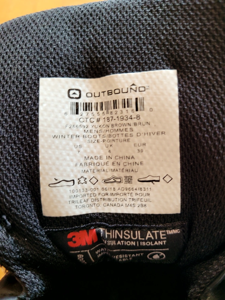 Selling a pair of Outbound winter boots in Yukon Brown! These are a men's size US 7 / EUR 39. They feature 3M Thinsulate insulation to keep your feet warm and dry during the winter months. Used one time only.