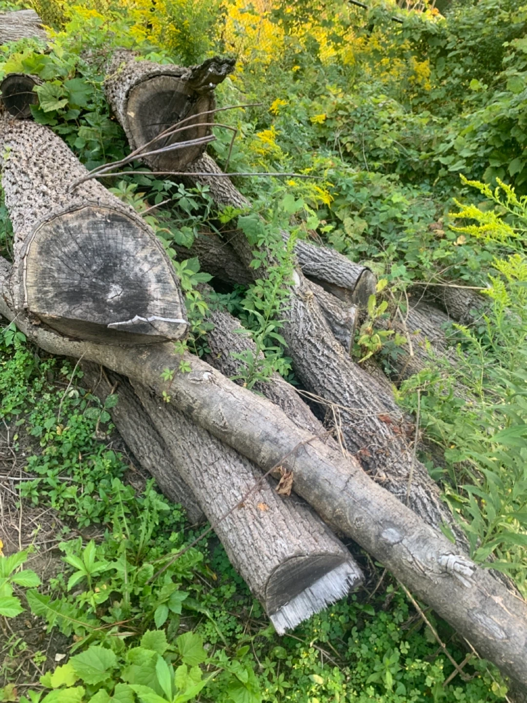 Roughly (estimated could be less then .) 20 logs different sizes anywhere from 5ft-16ft length and 4 inch to 10 inch diameter. Selling whole lot for $800 or $60 per 5ft length.