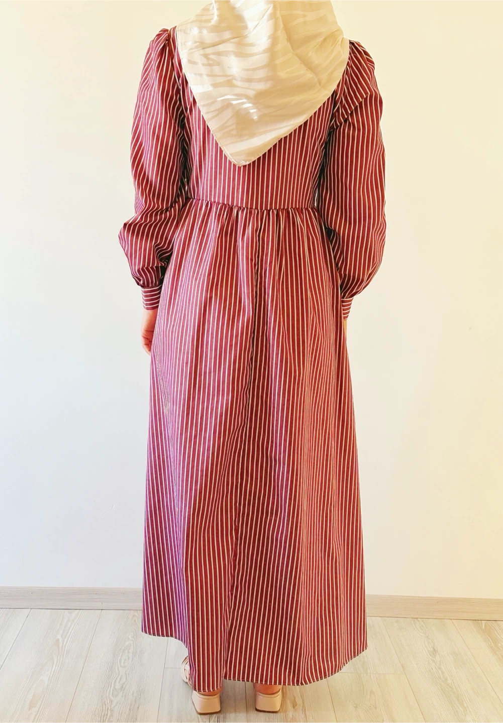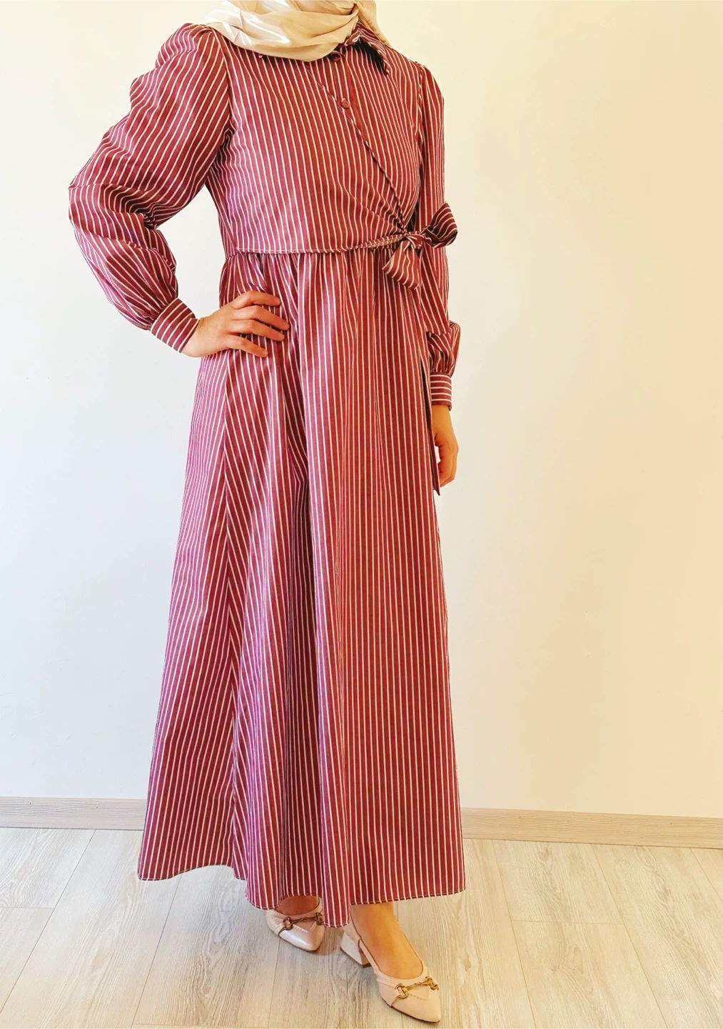 This is a beautiful striped maxi dress! It features long sleeves and a tie at the waist. The dress is in excellent condition and is perfect for any occasion