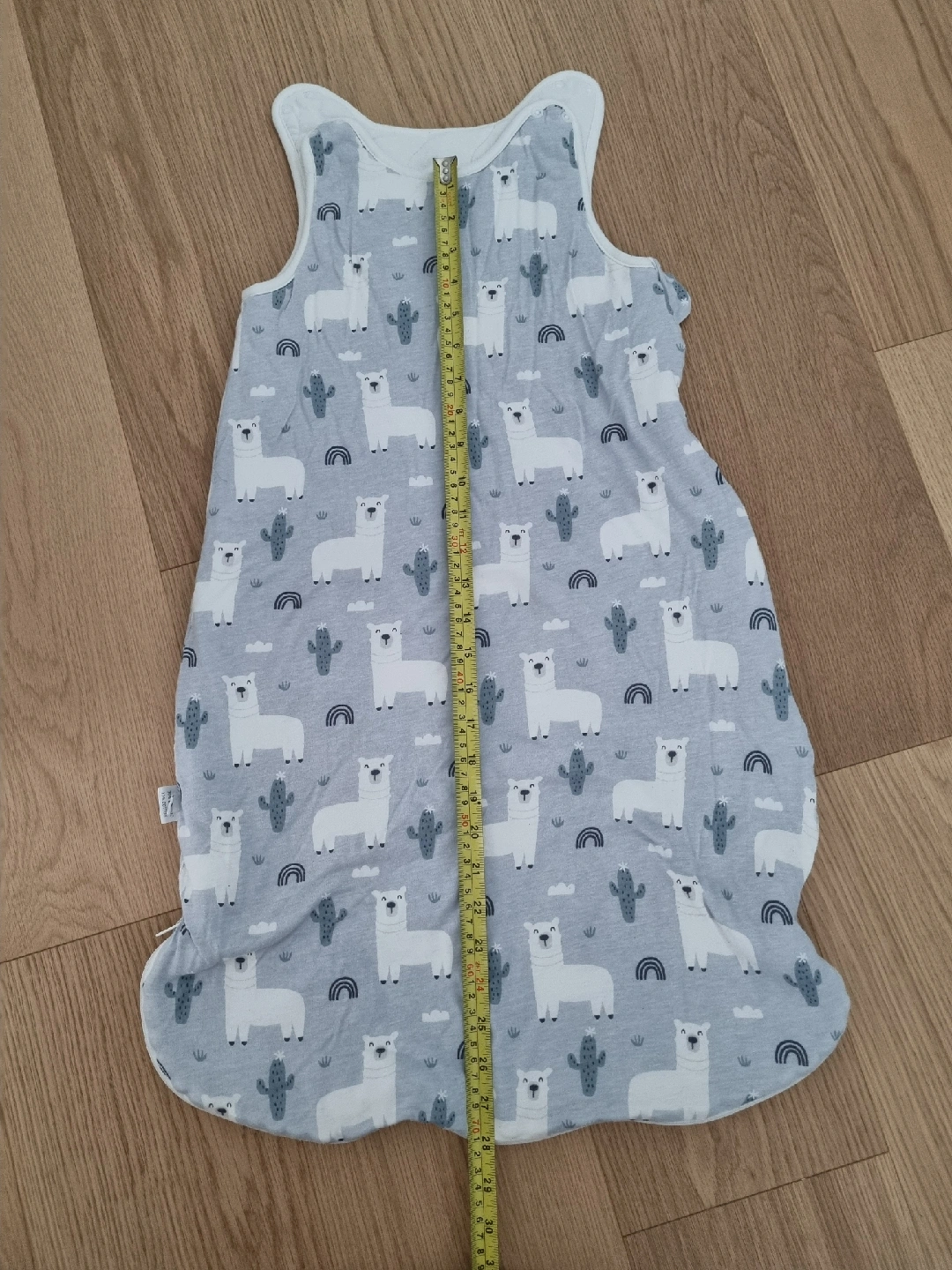 Cozy baby sleeping bag made with 70% bamboo and 30% cotton! The sleeping bag has a cute pattern with alpacas, cacti, and rainbows. It measures approximately 75cm in length. Perfect for keeping your little one snug and secure