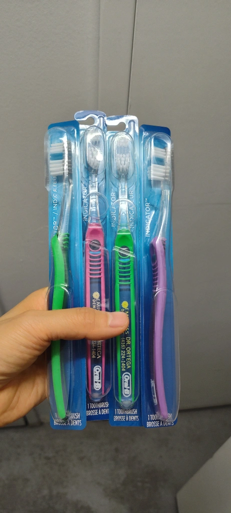 Selling a brand new pack of four Oral-B Indicator toothbrushes! You'll get one each of green, pink, light green, and purple. Keep your teeth sparkling clean!