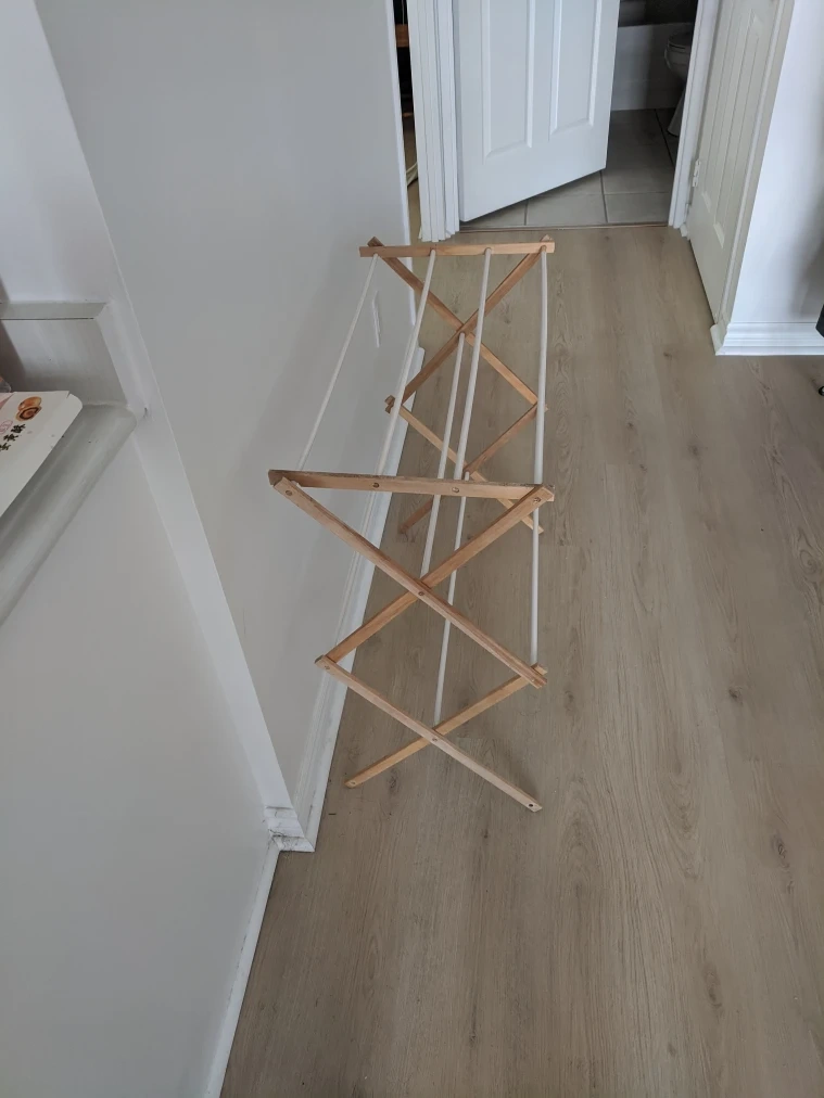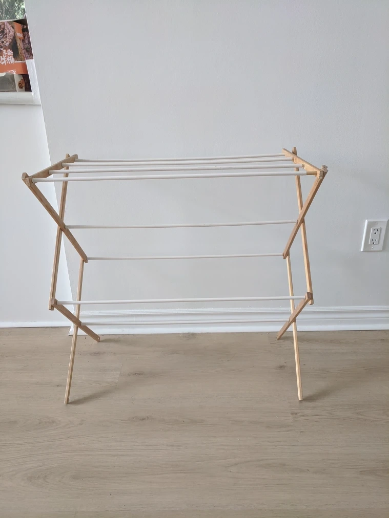 Selling a wooden clothes drying rack. It's in good condition and folds up for easy storage. Perfect for small spaces or for air-drying delicate items! the height of it is 29". pick up at 195 Merton Street Toronto Or pick up at Subway station Davisville. And if you buy some more items in my listing I'll deliver it to your house. Thanks.