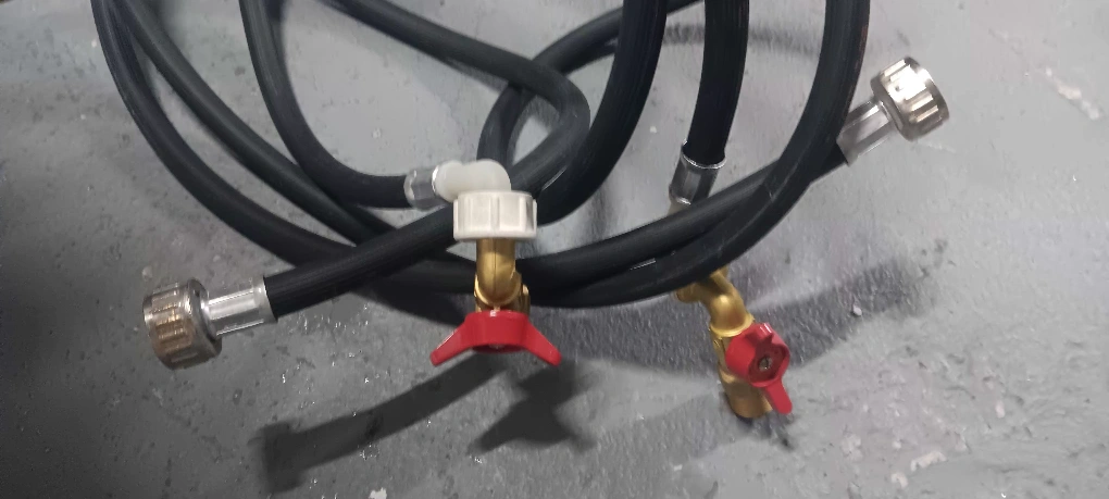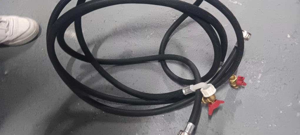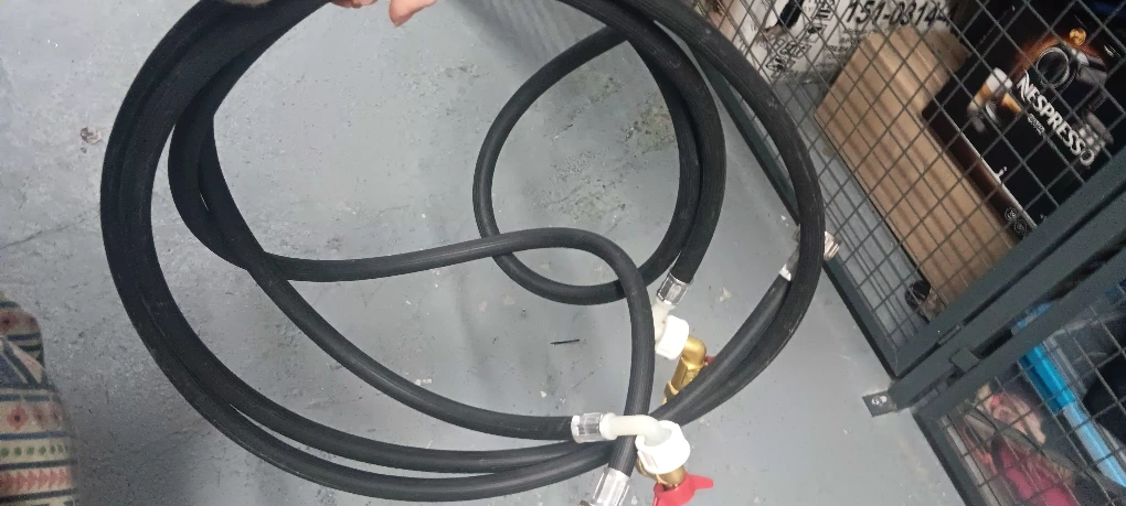 Selling a black hose equipped with valves. It appears to be in good condition and ready for use .They wereused for my old washer. It has been in my locker for one year Please take a look at the photos to assess its condition for yourself
