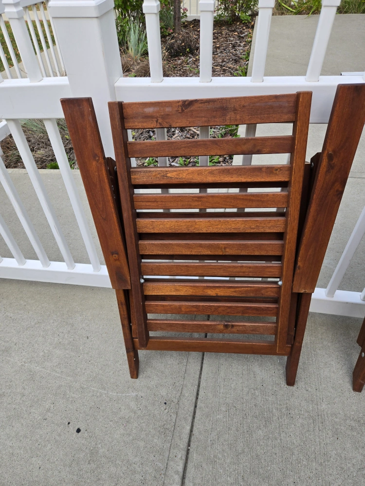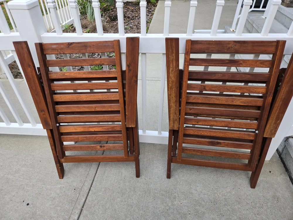 Set of 2 IKEA NÄMMARÖ wooden outdoor folding chairs with armrests. Perfect for patio, backyard, or balcony seating. Made of sturdy acacia wood Comfortable high back with slatted design Foldable for easy storage Gently used, clean and in great condition 💰 $60 for both chairs, or $35 each 📍 Pickup in Rabbit Hill area only