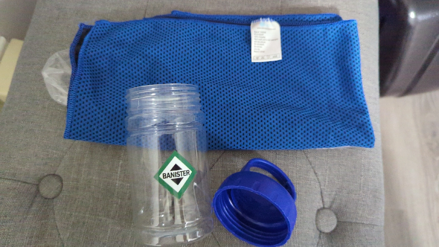 Selling a Banister water bottle and a Dabco Solutions cooling towel.