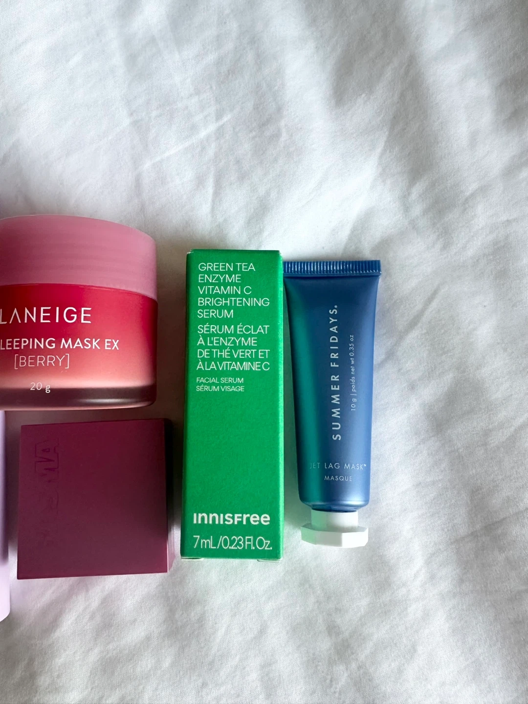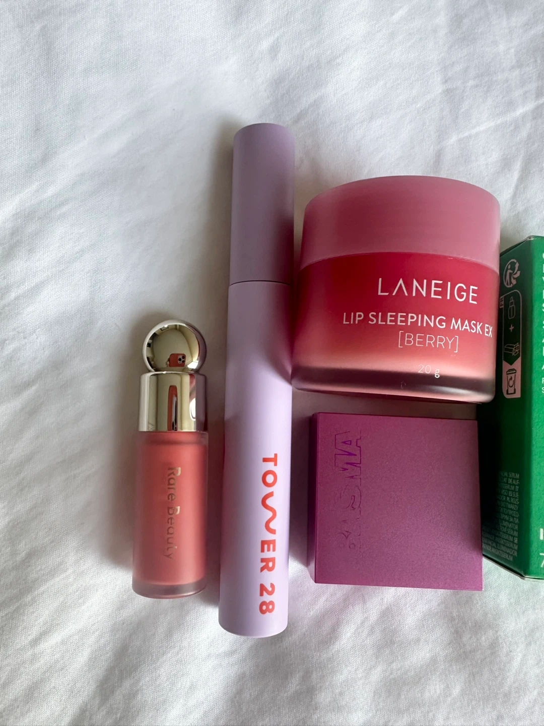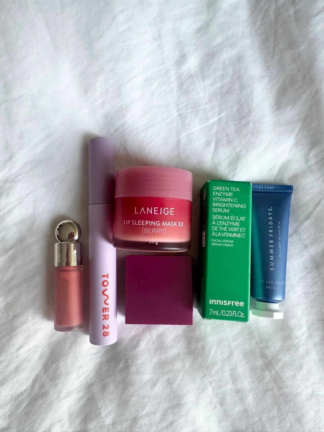 Makeup and skincare bundle featuring a variety of brands and products from Sephora. All brand new from Summer 2024 - 2025 and unused. Includes: - Rare Beauty blush in Joy, travel size 3.2ml - Tower 28 MakeWaves Lengthening + Volumizing Mascara in Drift - rich espresso brown, full size 8.5ml - Laneige Lip Sleeping Mask EX [Berry], full size 20g, EXP 2027.08.22 - Basma The Cream Blush in Fuchsia, mini size 1.2g - Innisfree Green Tea Enzyme Vitamin C Brightening Serum, sample 7ml, EXP 07.2026 - Summer Fridays Jet Lag Mask, mini size 10g Pickup in Richmond Centre or Lansdowne. Cash only.