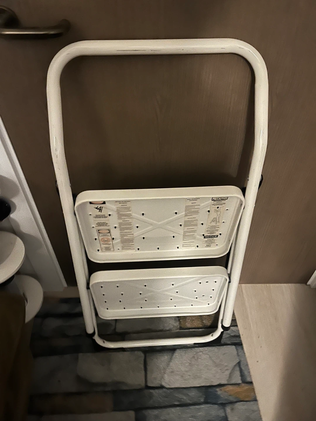 Looking to add a little height to your life? I'm selling a handy folding 2-step ladder. It's perfect for reaching those high shelves or tackling small tasks around the house. The ladder is white and in good condition, ready to help you with your next project