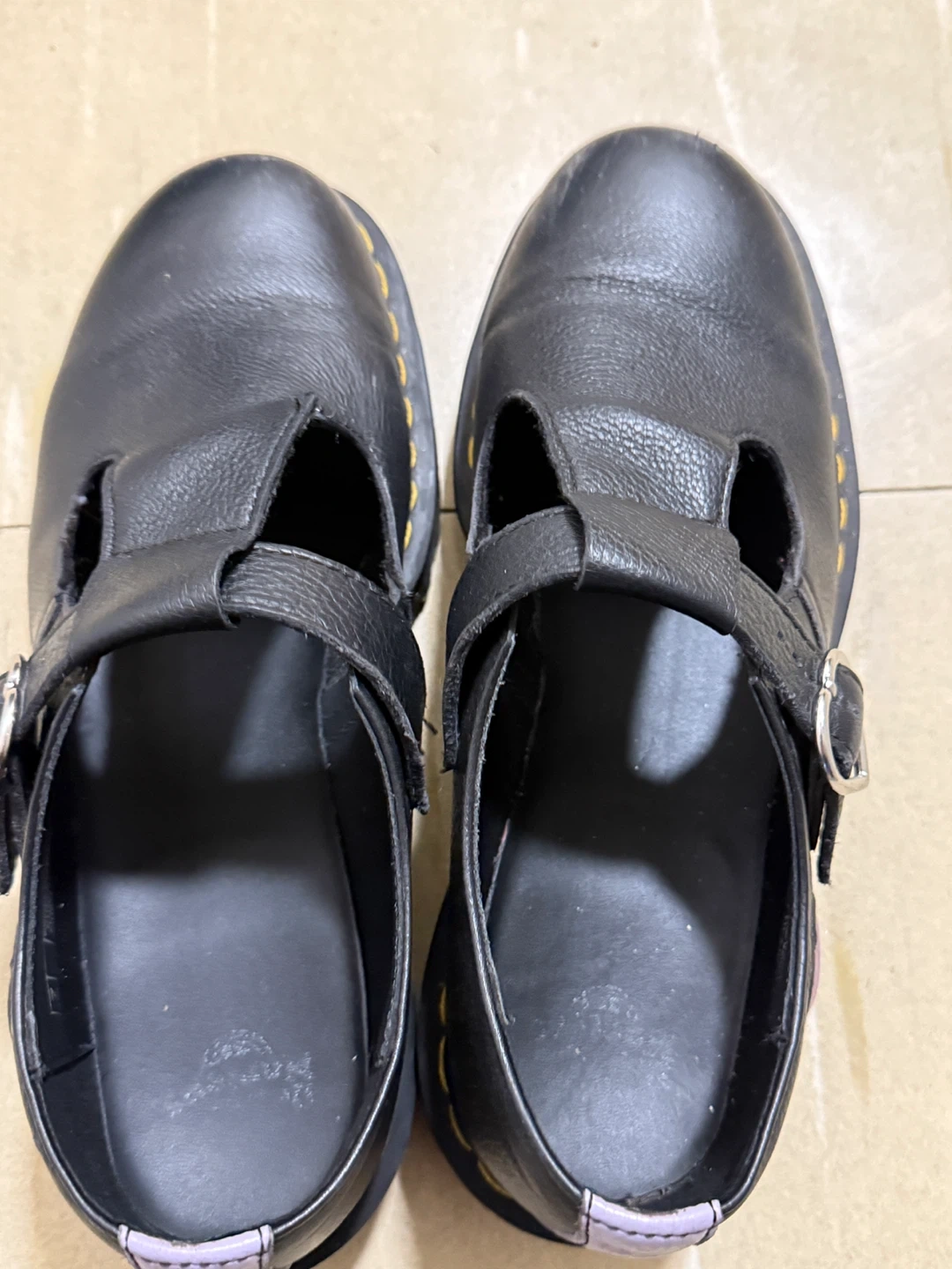 Selling a pair of Dr. Martens Polley Heart T-Bar shoes in US size 9.5. They're black leather with a cute heart detail on the side. These are super stylish and in great condition!