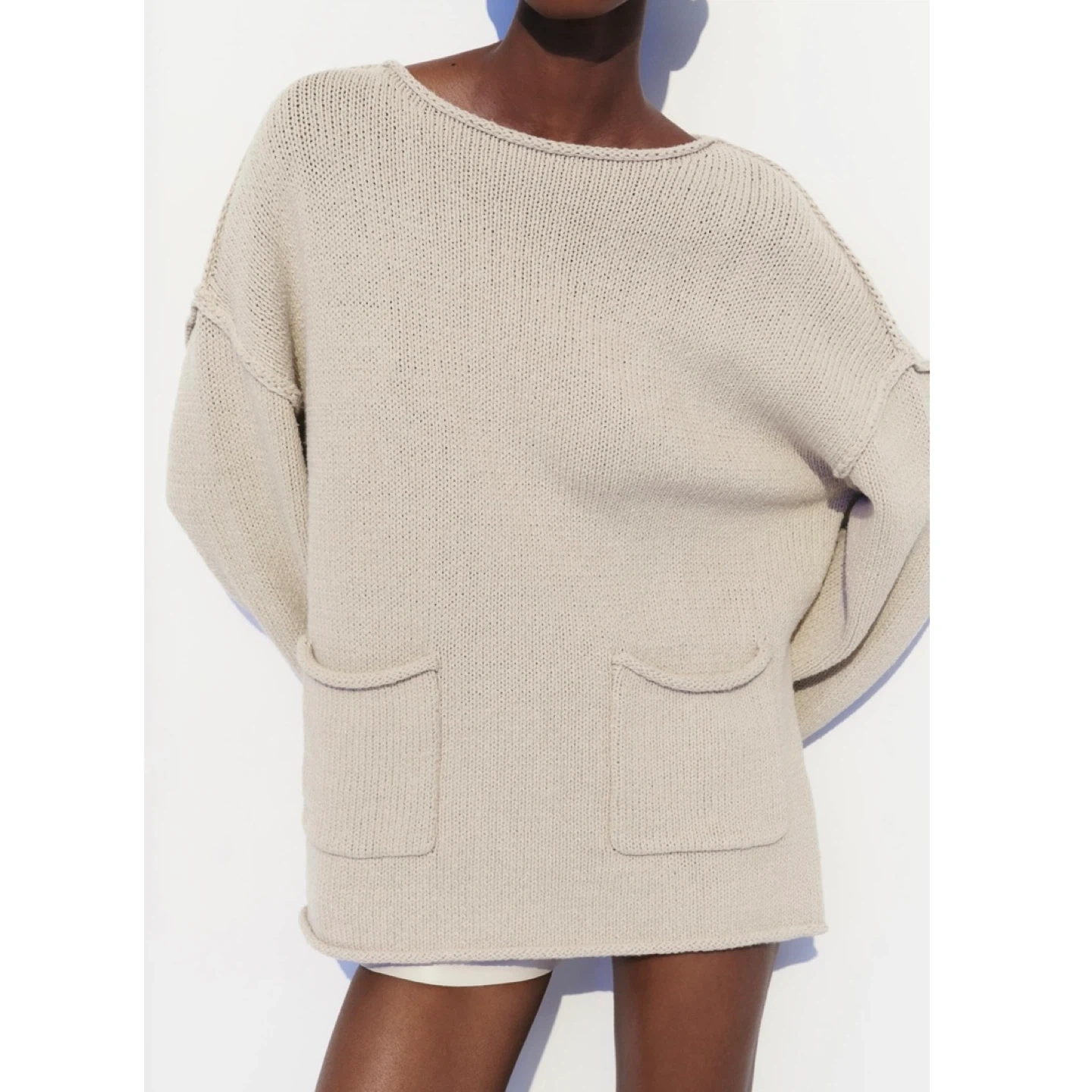 Pick up only in Leslieville (Queen and Pape) Check out other listings! Zara oversized sweater with rolled edges and patch pockets. Care + content label has been removed. Made of heavyweight knit in a sand / oatmeal colour. There's some general wear but no staining or damage. It's clean and in excellent condition. Size XS-S Approximate measurements laid flat Shoulder 22” Pit to pit 22.5” Shoulder to cuff 18” Center back length 23”