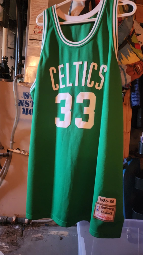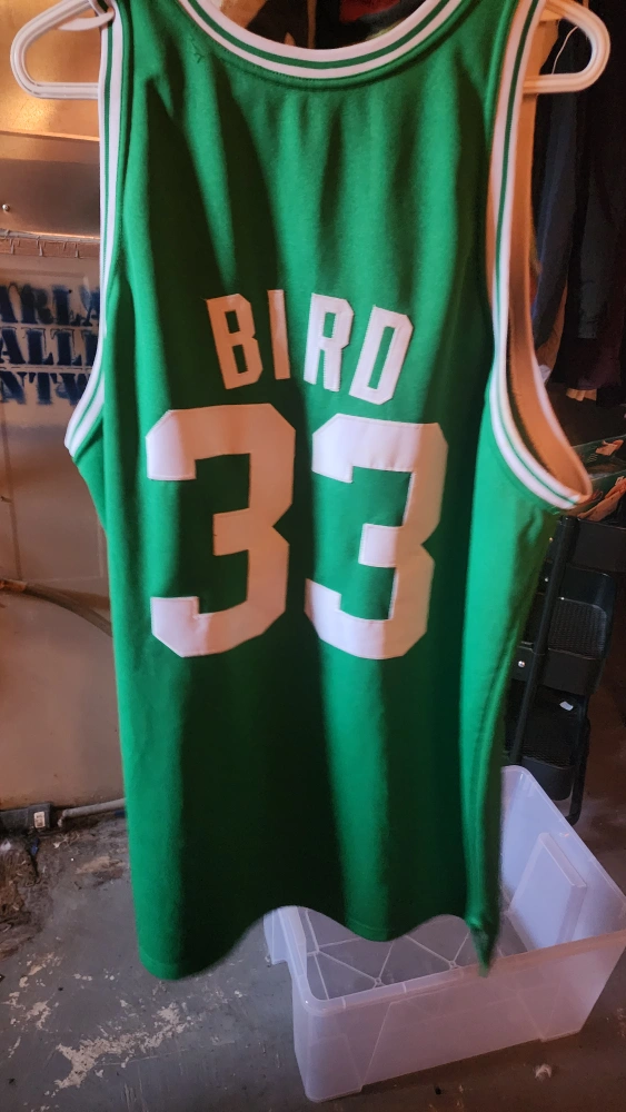 Selling a Larry Bird #33 Celtics jersey from Mitchell & Ness Hardwood Classics. It's green and features the Celtics logo and Bird's name and number. Great for any basketball fan!